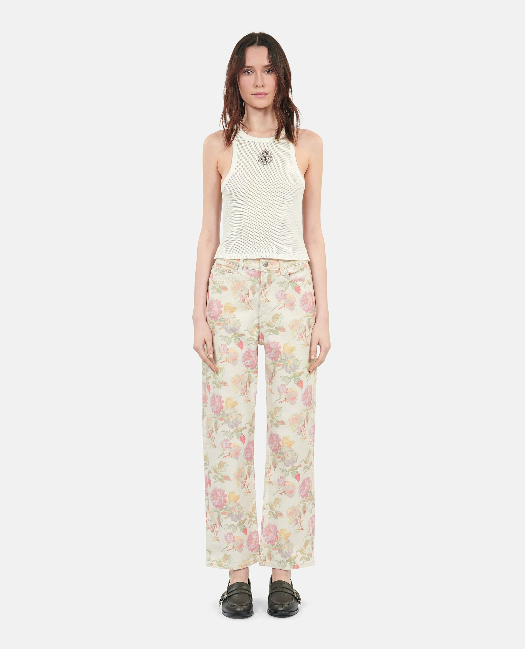 Confectionné en coton ajouré, ce débardeur offre une texture légère et respirante, idéale pour les journées ensoleillées ou les superpositions stylées. Le col rond et l’absence de manches renforcent son allure minimaliste, tandis que la sérigraphie discrète à l’avant apporte une touche d’originalité sans compromettre la sobriété.