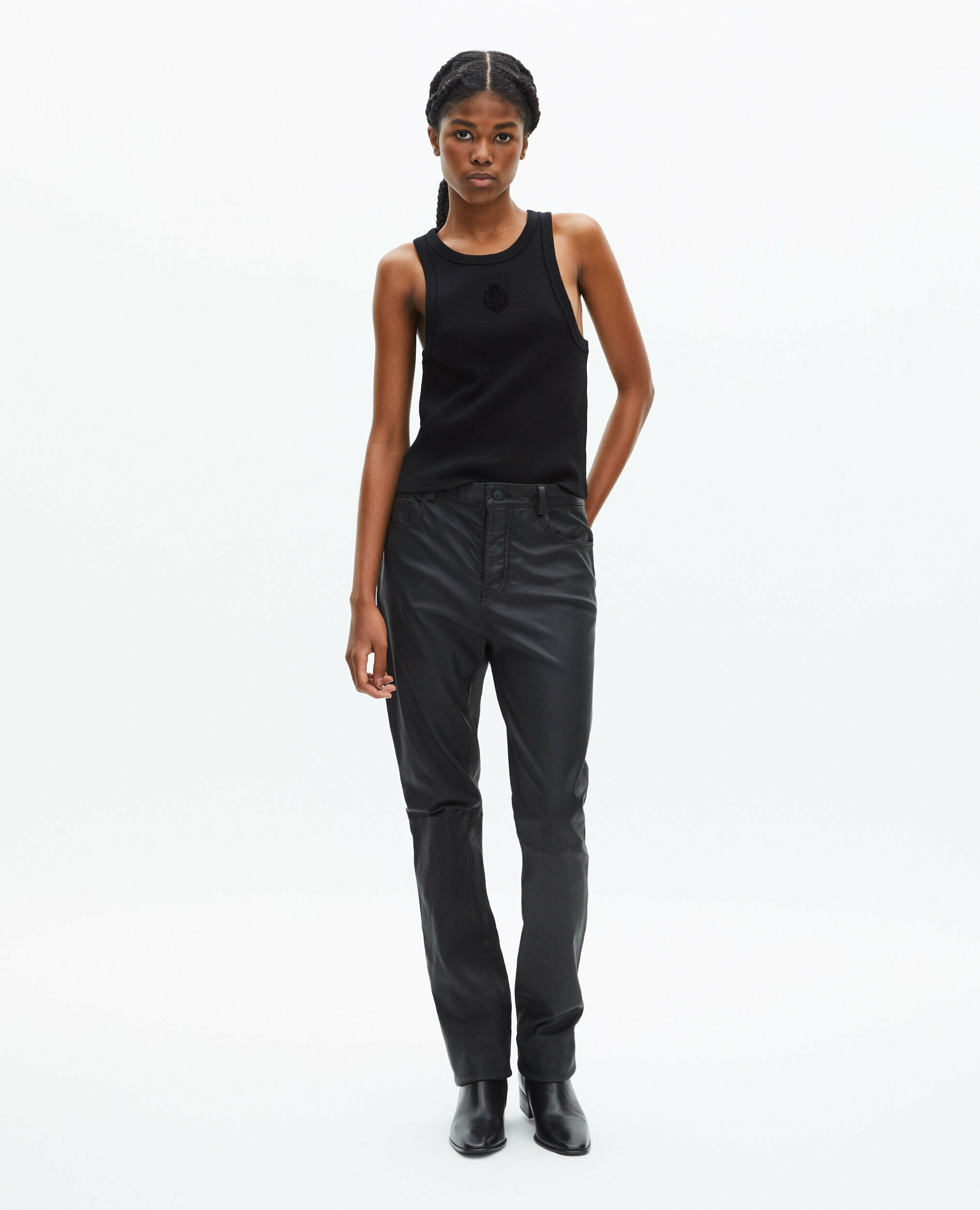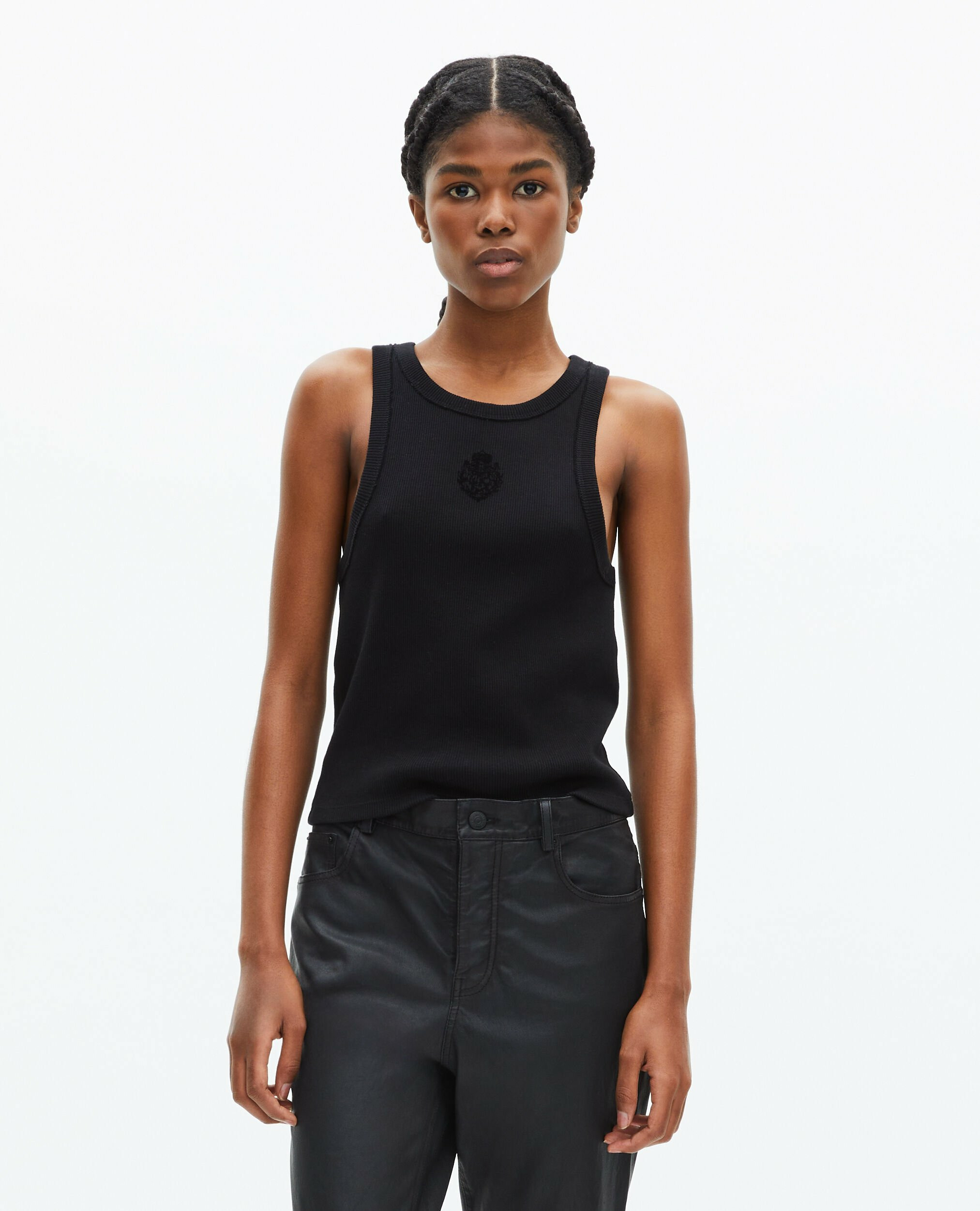 Confectionné dans un jersey côtelé mêlant coton et élasthanne, ce top ajusté épouse parfaitement les formes tout en offrant un confort optimal. Son col rond et ses manches absentes renforcent sa silhouette épurée, tandis que le blason floqué The Kooples apporte une touche distinctive et moderne. Idéal pour un look casual chic, il se porte aussi bien seul qu’en superposition.