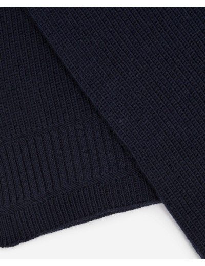 Confectionnée en laine mérinos côtelée, cette écharpe mixte allie douceur et robustesse. Sa texture fine et chaleureuse enveloppe sans alourdir, tandis que sa teinte bleue profonde apporte une note sophistiquée à toutes vos tenues, du casual au plus habillé. Avec ses dimensions généreuses, elle se porte de multiples façons, pour un look personnalisé et confortable.