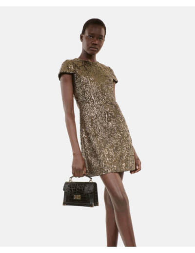 Affirmez votre élégance avec cette robe ajustée The Kooples, sublimée par des sequins brodés qui captent la lumière à chaque mouvement. Une pièce audacieuse et raffinée, parfaite pour révéler votre style unique.