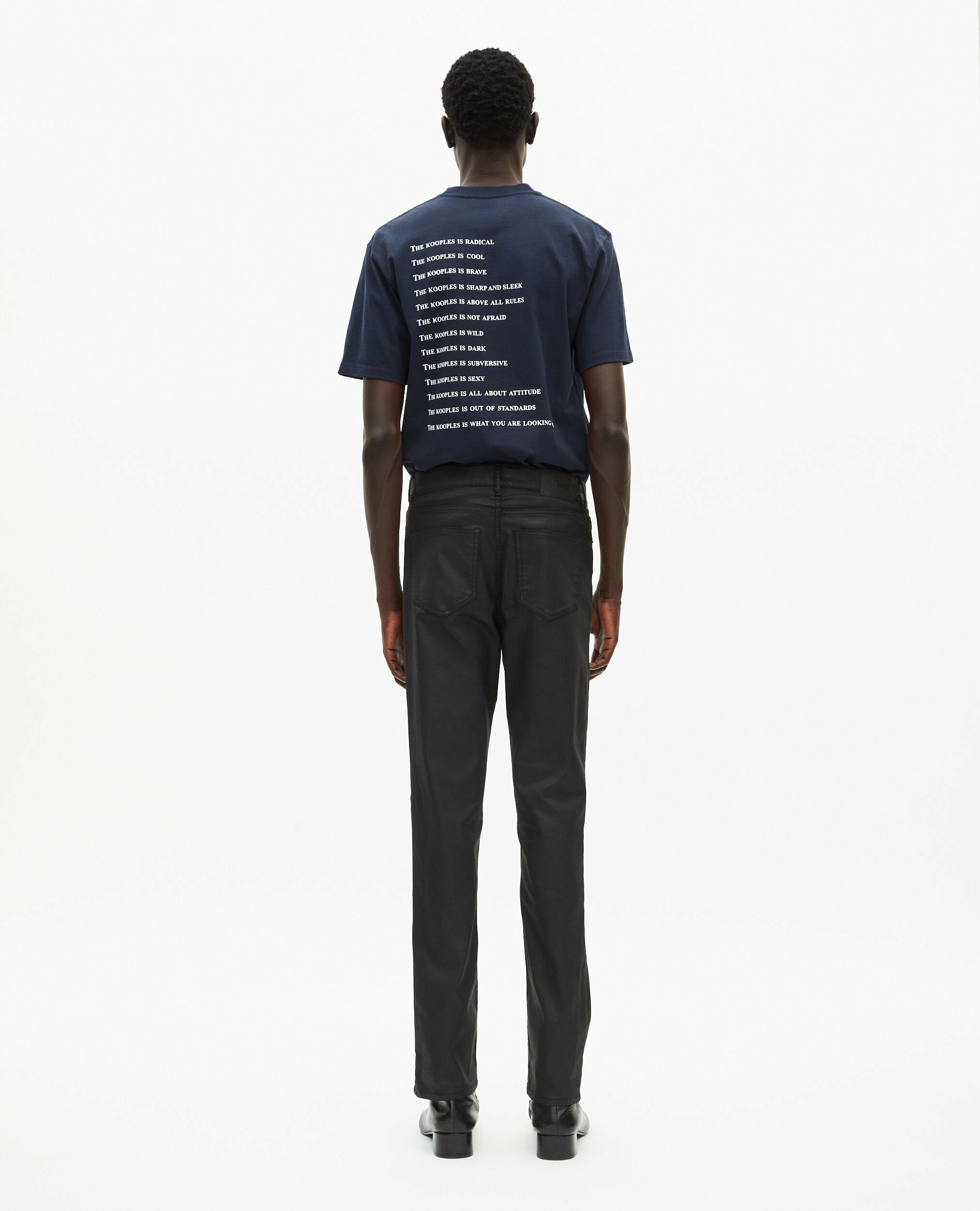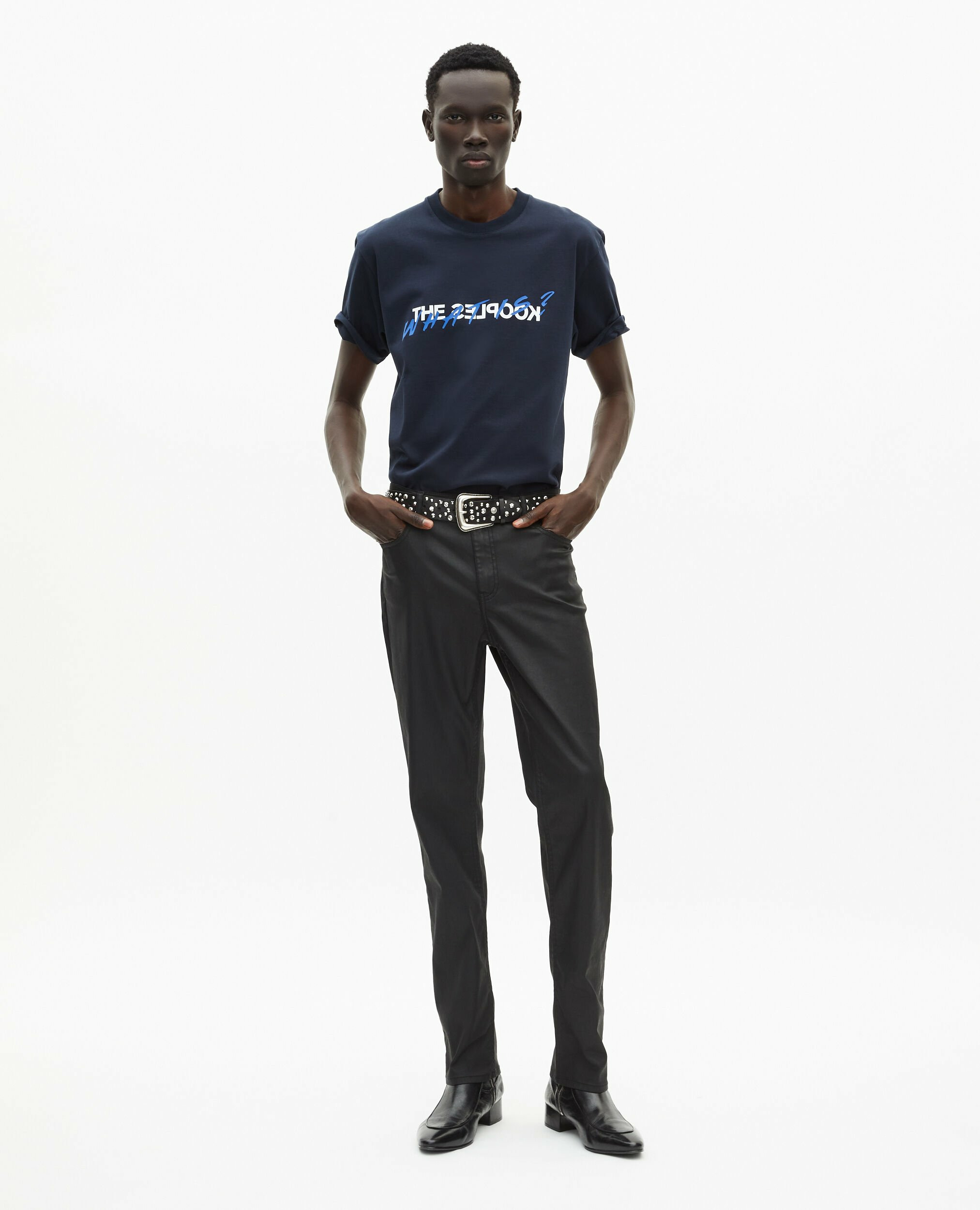 Jean homme The Kooples, taille moyenne avec passants, jambe slim, fermeture zip et bouton, cinq poches.