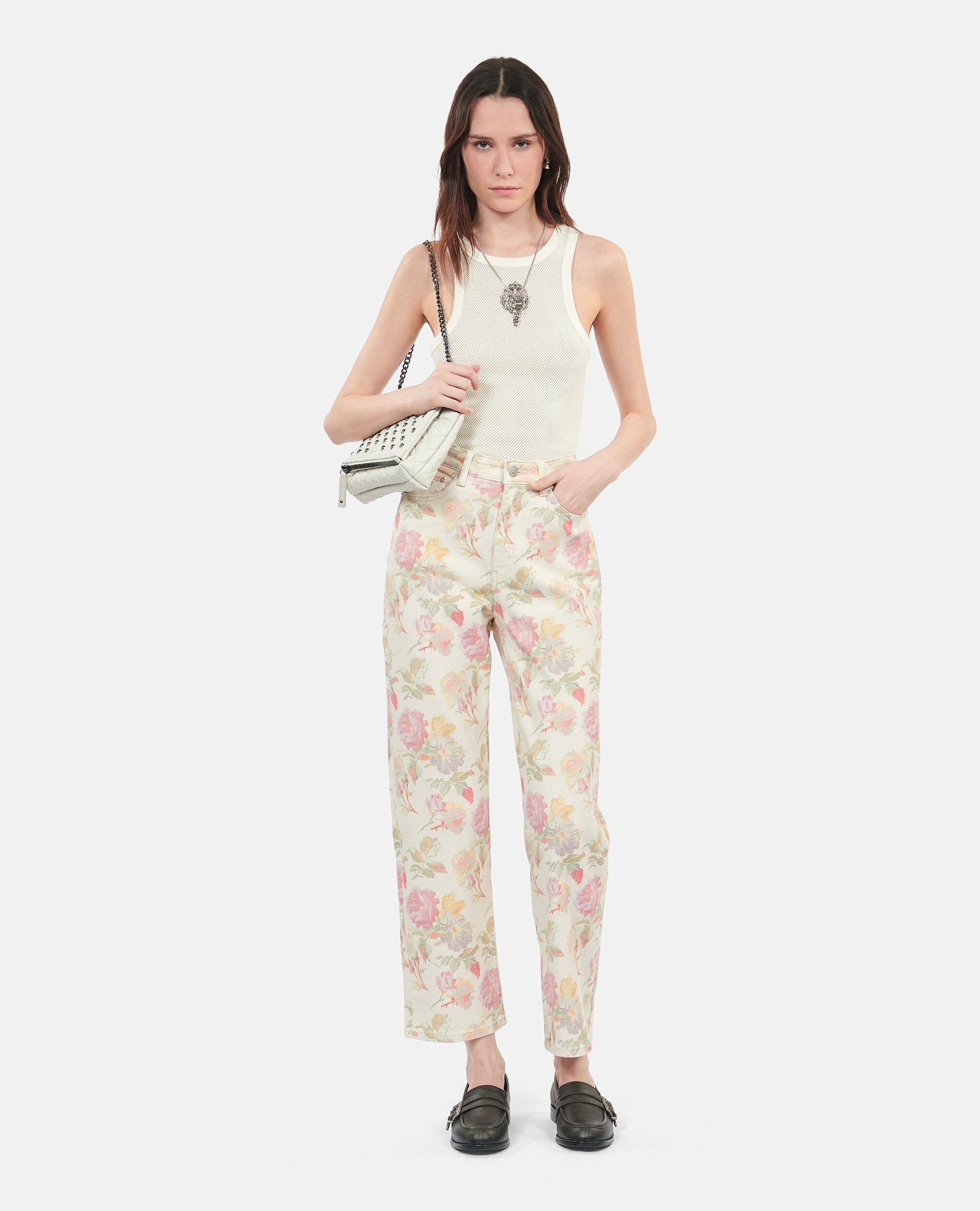 Adoptez l’allure décontractée et féminine avec ce jean boyfriend imprimé signé The Kooples. Un modèle audacieux qui allie confort et style grâce à son motif floral unique.