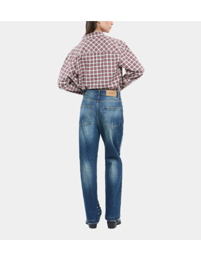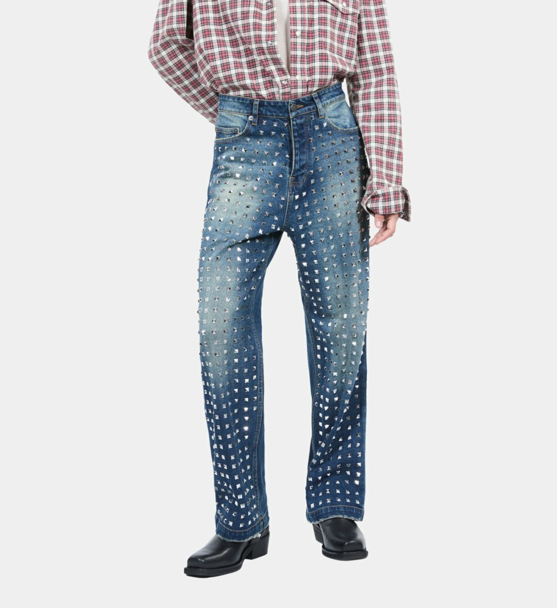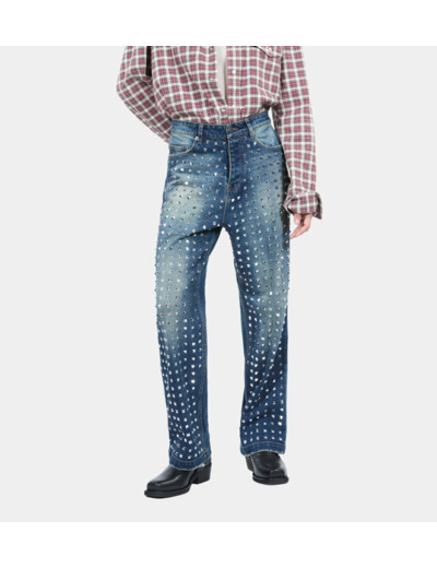 Confectionné dans un denim bleu profond, ce jean droit se distingue par ses clous discrets qui apportent une touche rock et raffinée. Sa coupe droite assure un confort optimal tout en valorisant la ligne, parfait pour une allure à la fois décontractée et sophistiquée. Portez-le avec un blazer ou un t-shirt pour un look urbain et affirmé.