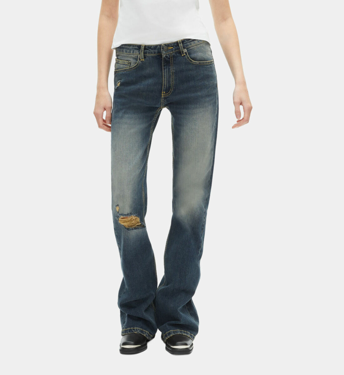 Ce jean met en valeur votre silhouette tout en offrant un confort optimal grâce à sa taille basse avec passants. Si vous hésitez entre deux tailles, optez pour la taille en dessous afin de profiter d’un ajustement parfait et flatteur.