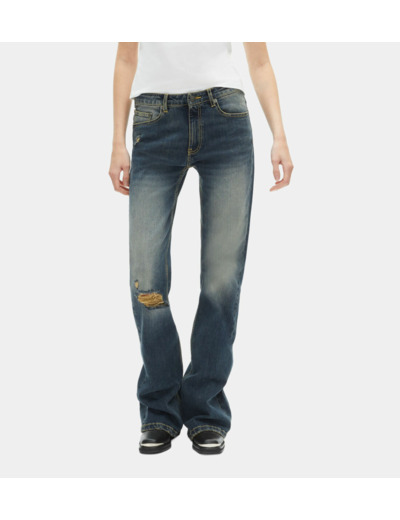 Conçu pour les femmes qui veulent se démarquer, ce jean présente des abrasions soigneusement travaillées pour un look urbain et moderne. Sa jambe flare apporte une touche rétro réinventée, tandis que la fermeture à zip et les cinq poches pratiques garantissent un porté facile et fonctionnel. La coupe large assure une liberté de mouvement idéale, parfaite pour vos journées actives ou vos sorties décontractées.