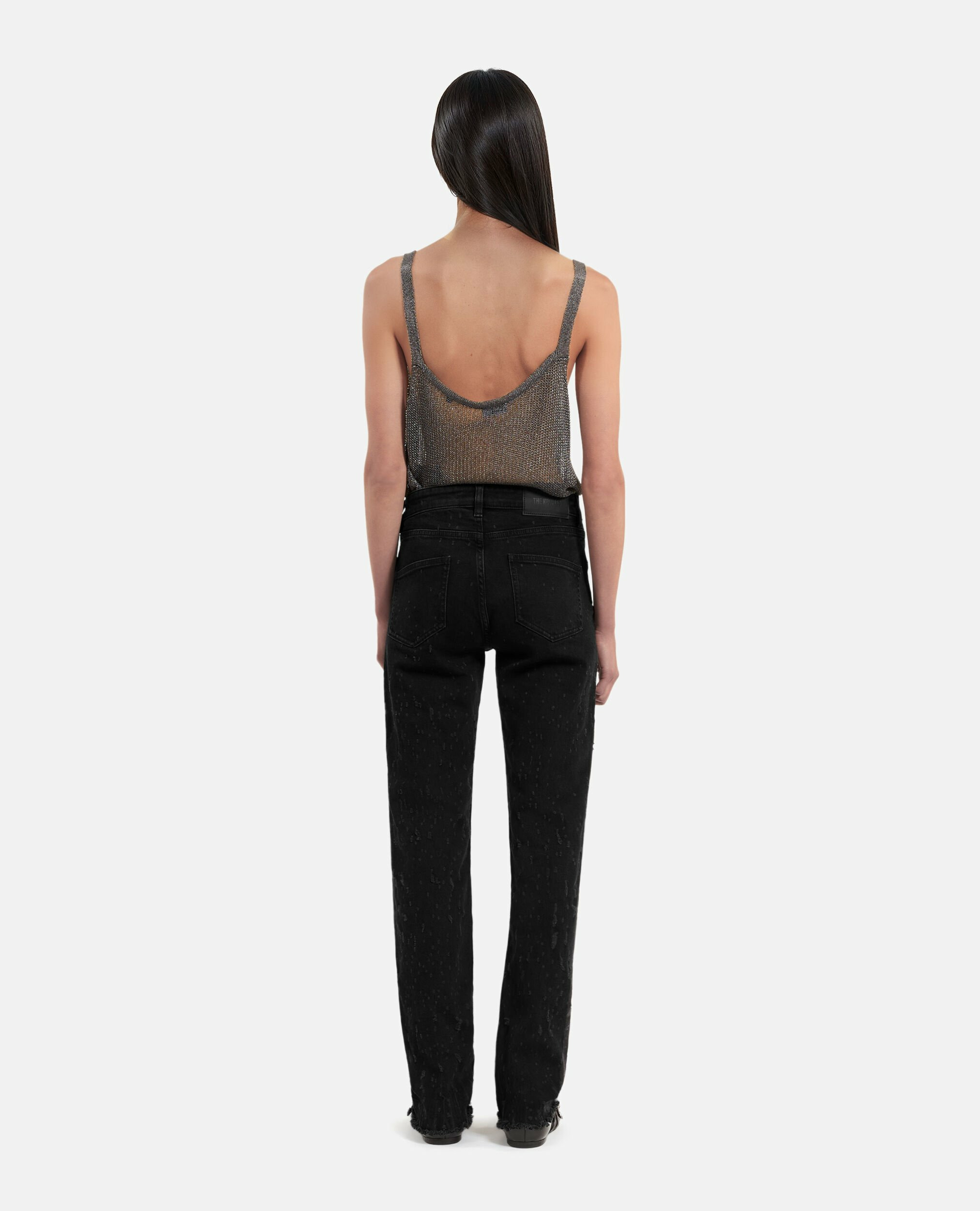 Jean femme The Kooples, coupe slim long, taille basse avec passants, fermeture à zip, cinq poches, détails d’abrasions pour un style authentique. Pour vous aider dans votre choix, n’hésitez pas à consulter notre Denim Guide.