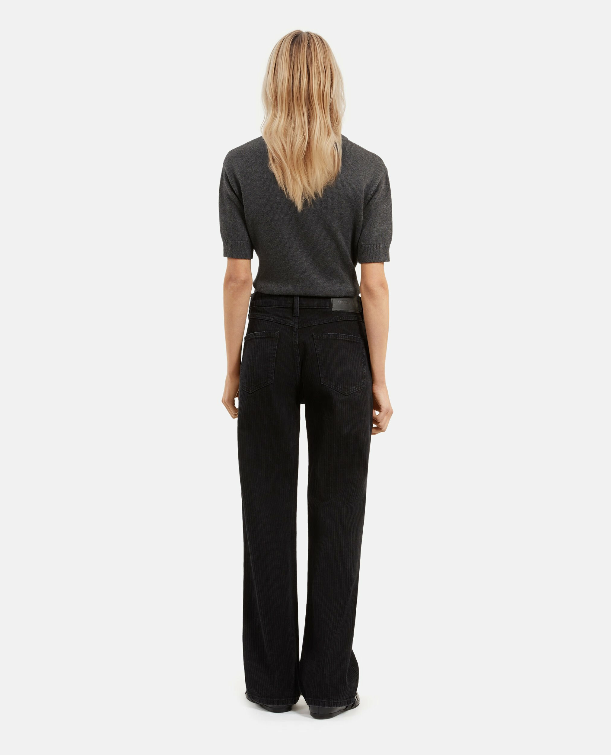 Confectionné dans une matière soigneusement travaillée, ce jean taille haute affine la taille et allonge la jambe. La coupe droite assure une tenue fluide et facile à associer, du bureau aux sorties en ville. Son style épuré se marie aussi bien avec un blazer structuré qu’un t-shirt casual.