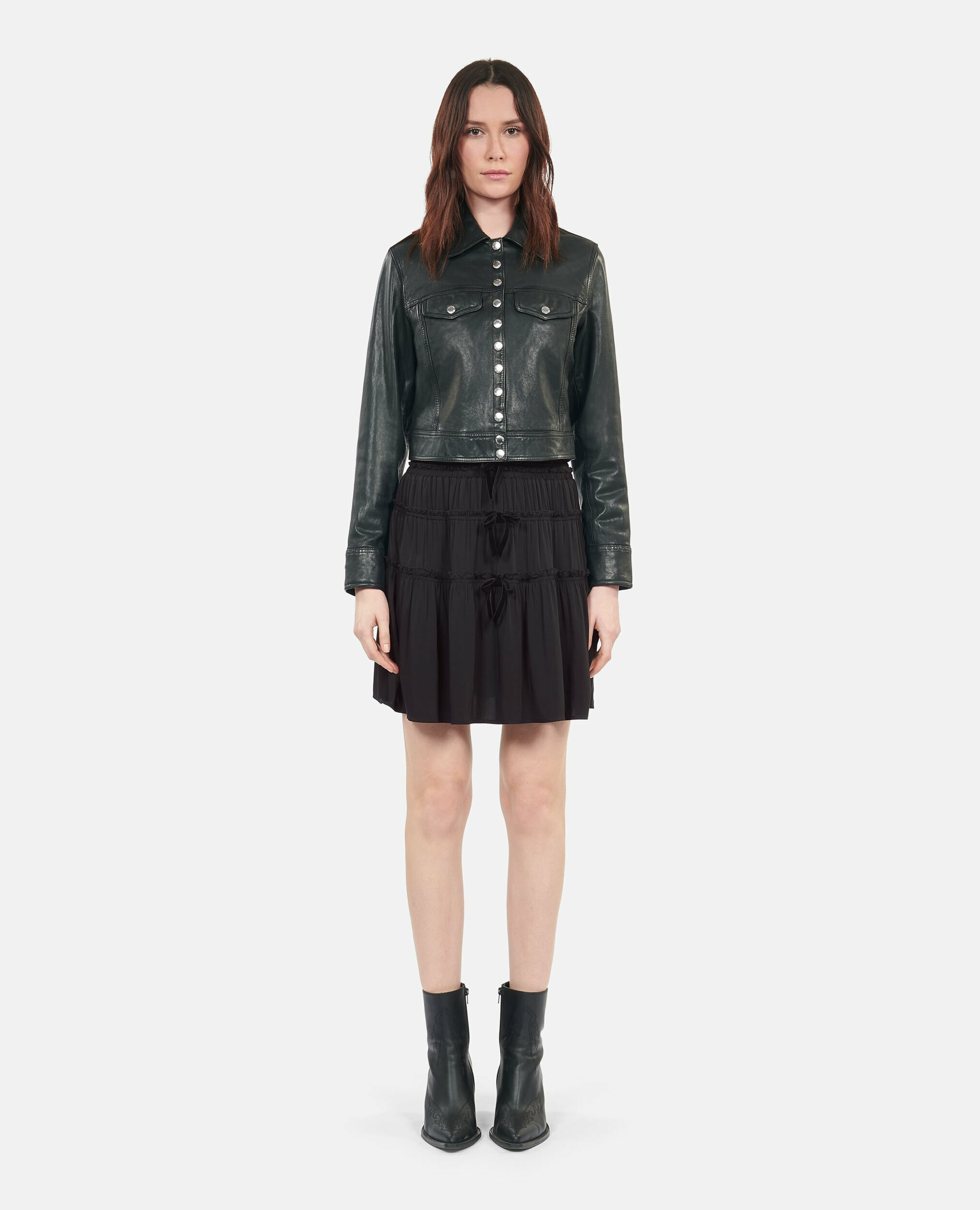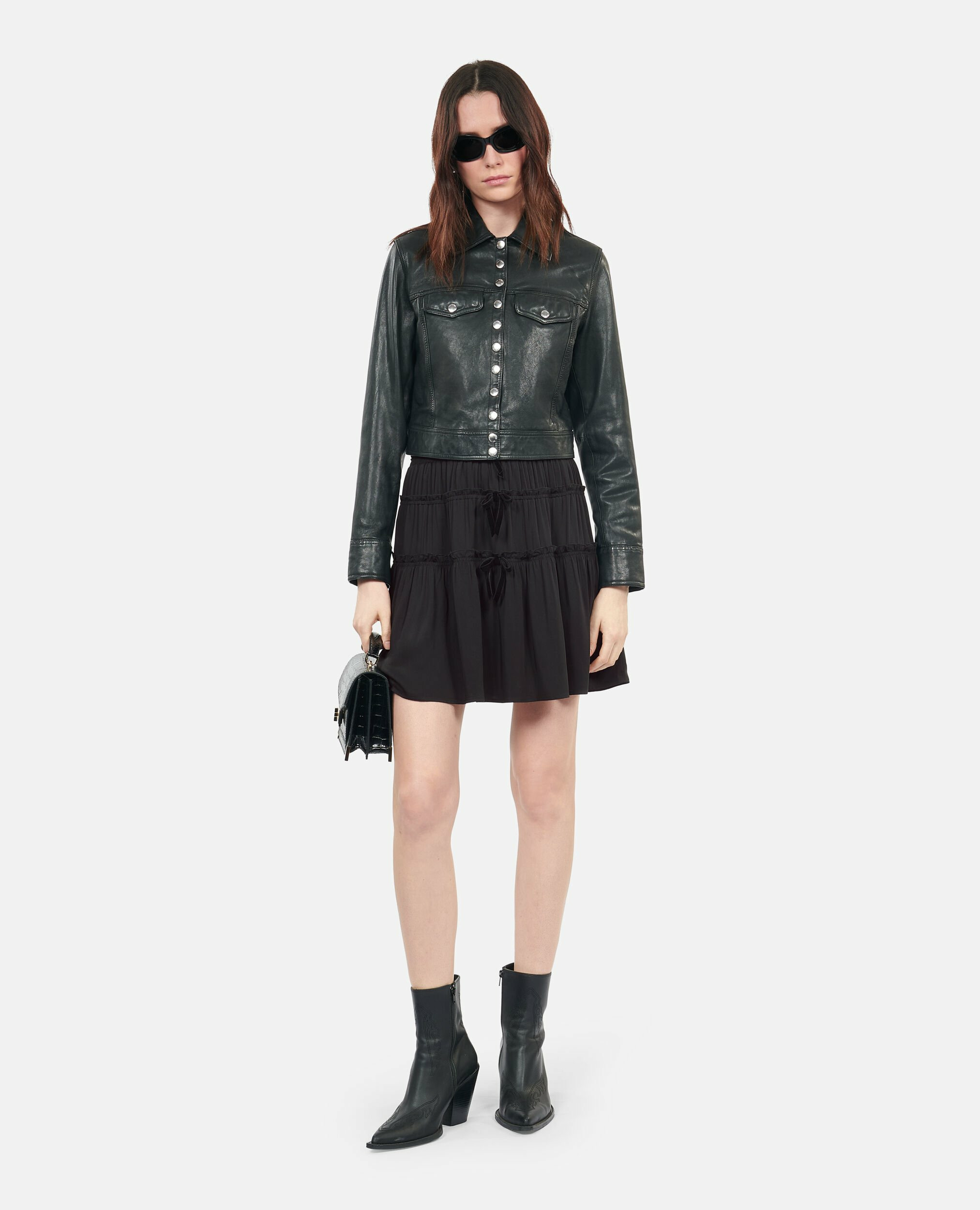 Sublimez votre silhouette avec cette jupe courte noire signée The Kooples, où élégance et détails raffinés se rencontrent. Une pièce incontournable pour affirmer votre style avec subtilité.