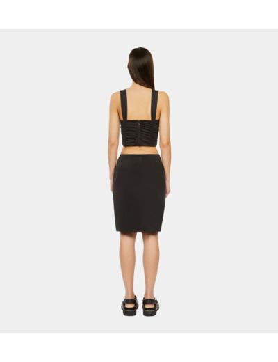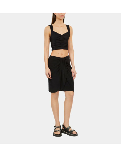Sublimez votre allure avec cette jupe courte noire drapée en soie lavée, un essentiel qui allie élégance et modernité. Sa coupe fluide et son tissu noble apportent une touche sophistiquée à toutes vos tenues.