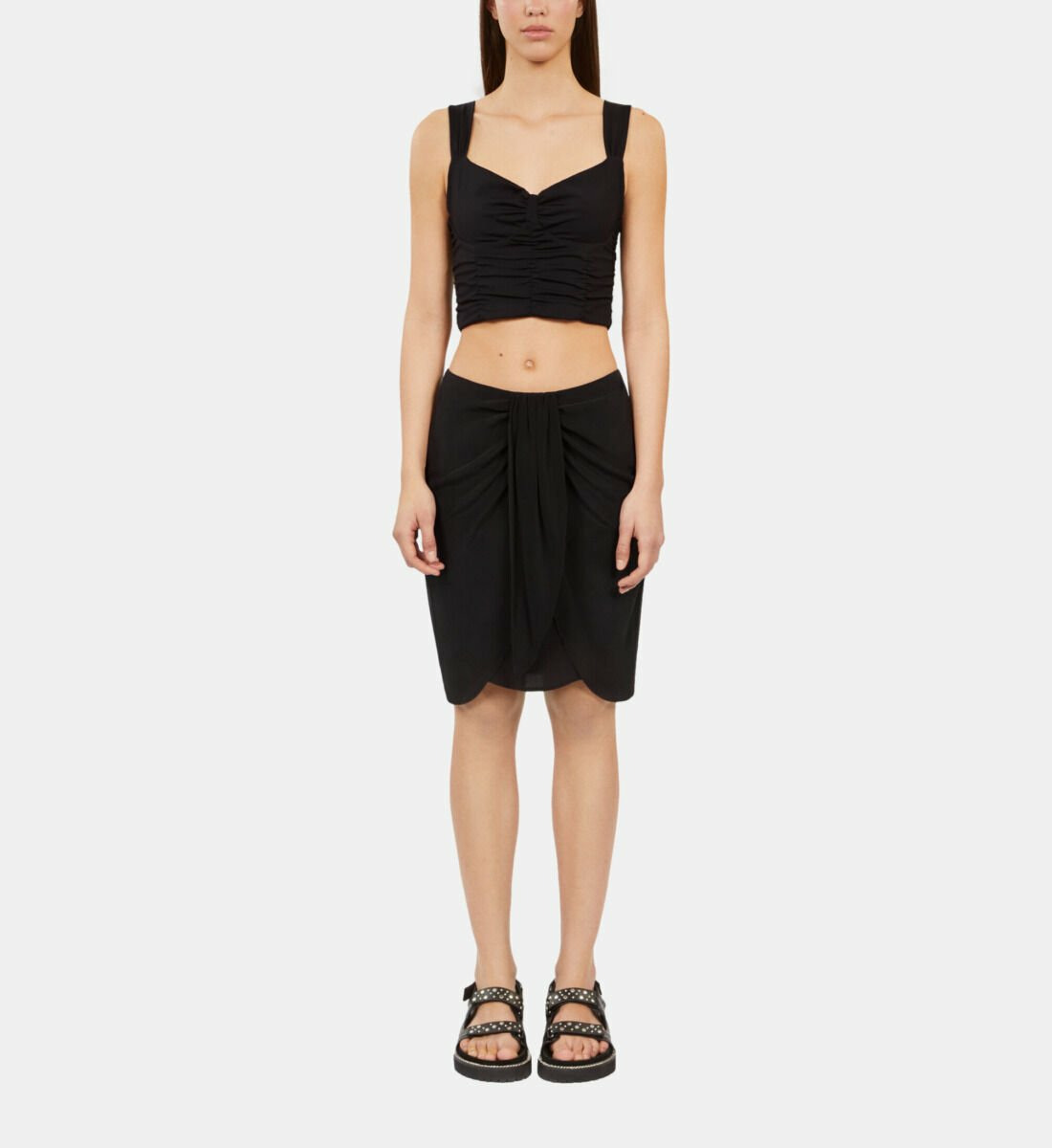 Sublimez votre silhouette avec cette jupe courte noire drapée en soie lavée, un essentiel chic et moderne. Son tombé fluide et sa texture délicate incarnent l’élégance naturelle au quotidien.