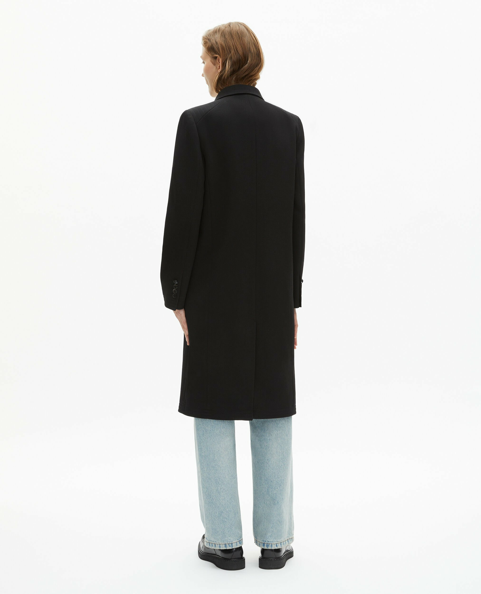 Composition et entretien : manteau femme The Kooples, col cranté, manches longues, bas de manches avec surpiqûres, fermeture trois boutons, poches passepoilées et à rabat, boutons en corne.