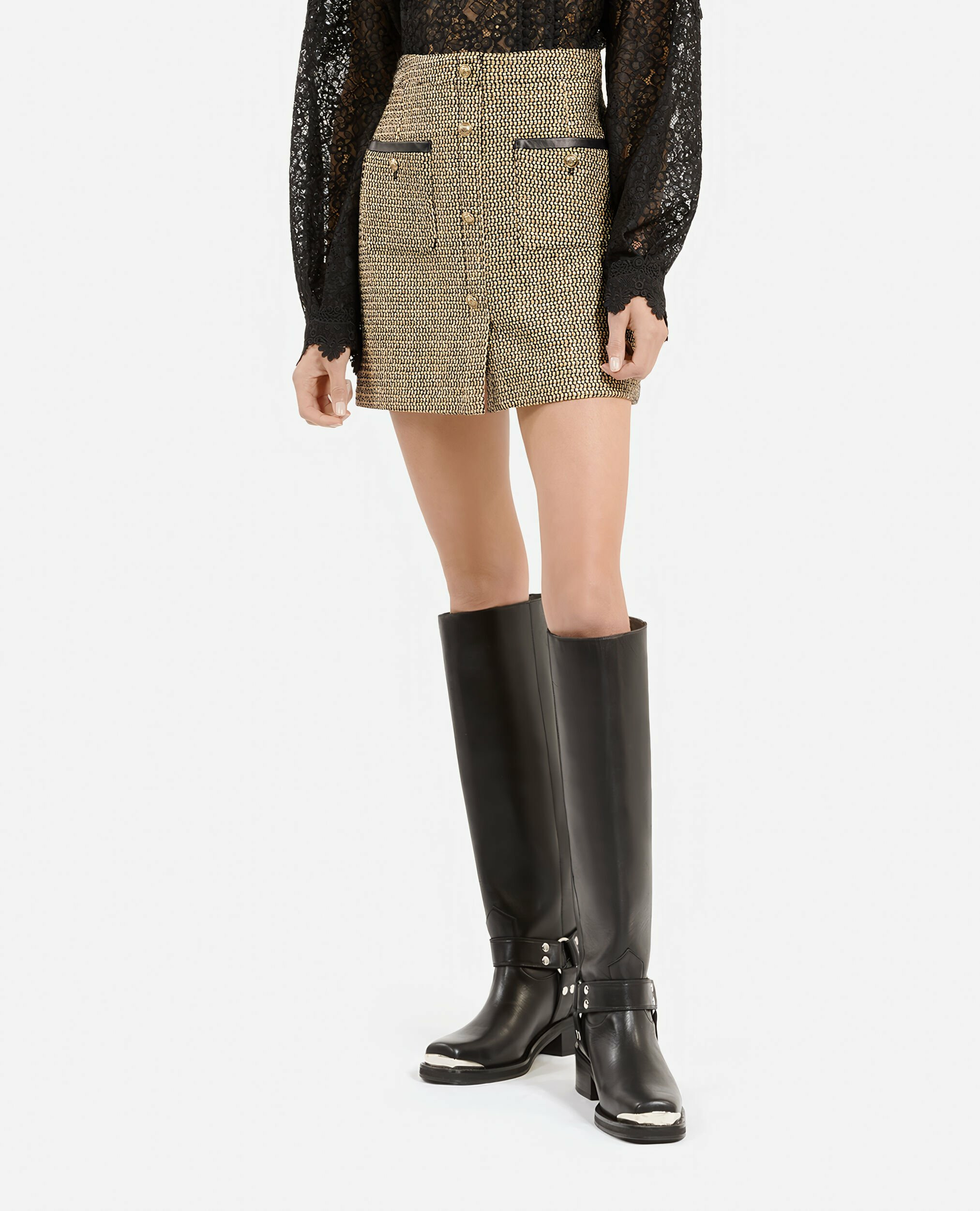 Affirmez votre style avec cette mini jupe en tweed signée The Kooples, un incontournable pour une allure chic et moderne. Son design soigné sublime vos tenues en toute simplicité.
