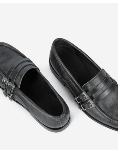 Conçus dans un cuir de vache à l’effet vintage, ces mocassins offrent une allure authentique et raffinée. Les boucles en métallerie argentée apportent une note distinctive, tandis que la silhouette épurée s’adapte aussi bien à un look casual qu’à une tenue plus sophistiquée. Leur design pensé pour la femme moderne conjugue confort et style avec subtilité.