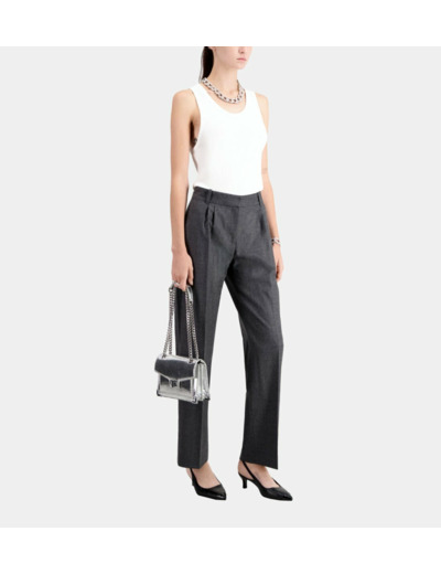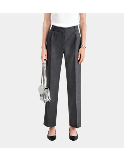 Affirmez votre élégance avec ce pantalon à pinces gris en flanelle, un incontournable pour une silhouette sophistiquée et moderne. Sa coupe droite élargie et sa taille haute subliment toutes les morphologies avec un confort remarquable.