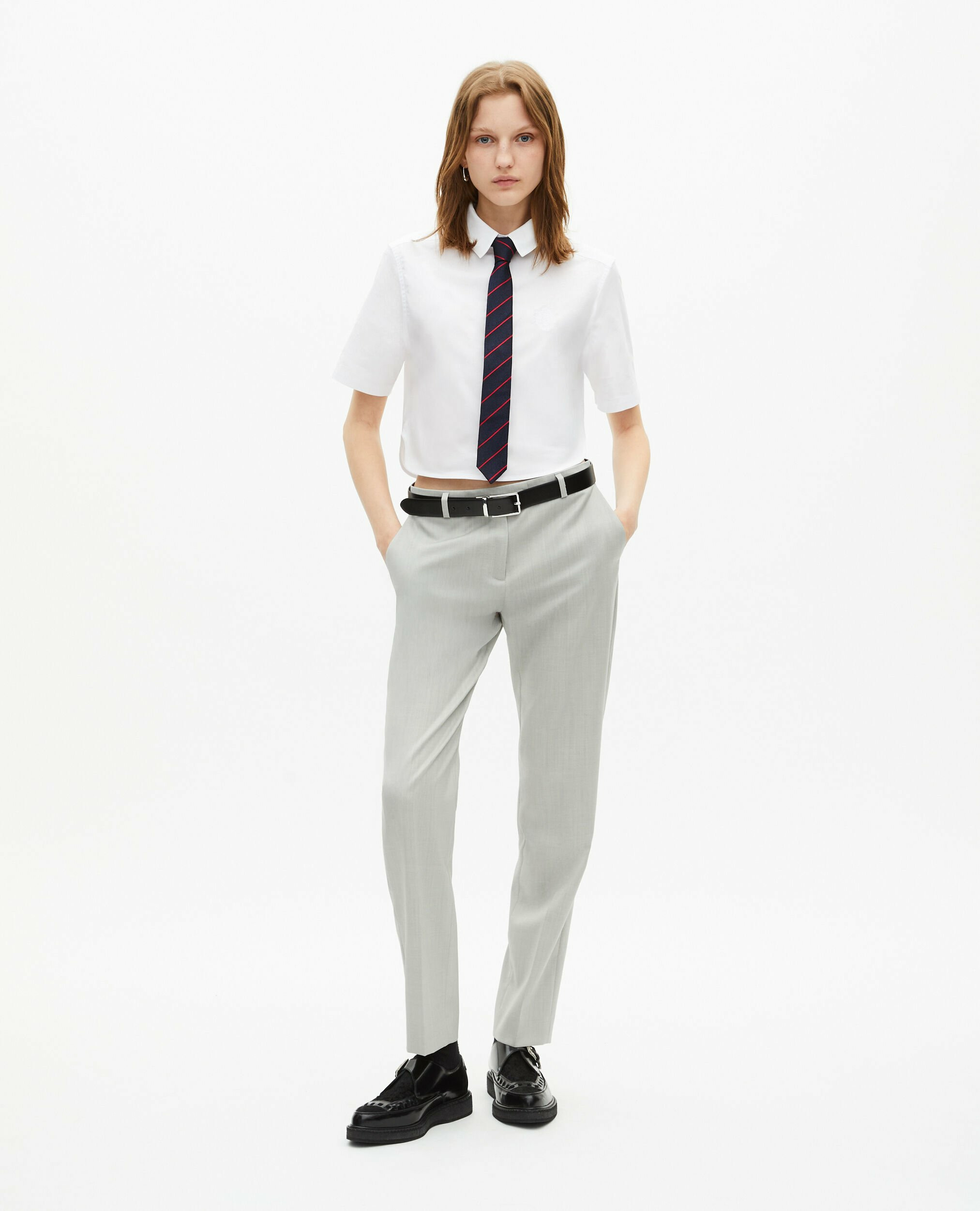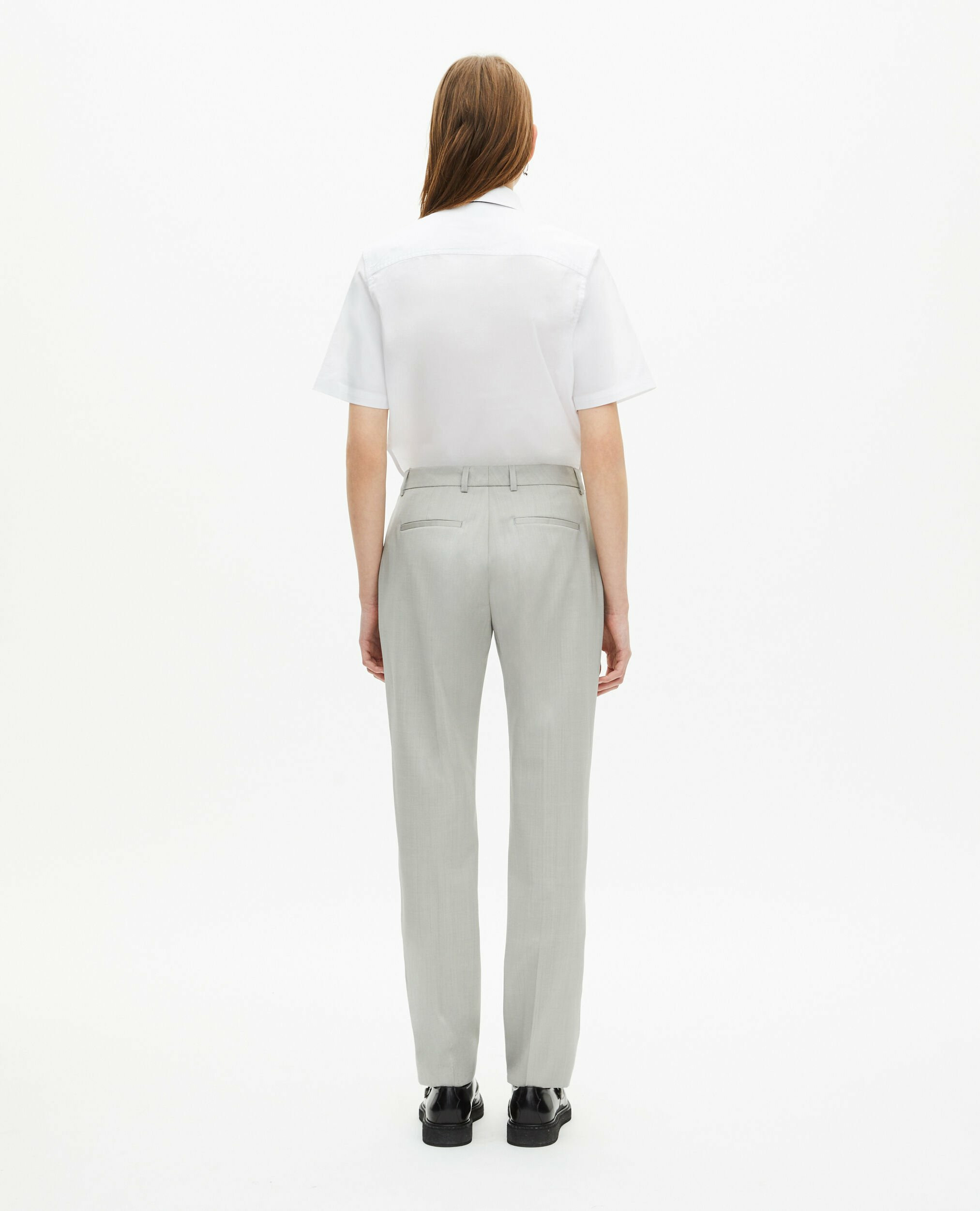 Conçu pour valoriser votre allure, ce pantalon offre une coupe près du corps qui affine la jambe et assure une tenue impeccable tout au long de la journée. Sa fermeture zippée avec bouton de rappel et agrafe garantit un maintien sûr et discret, pour un confort optimal sans compromis sur l’esthétique.