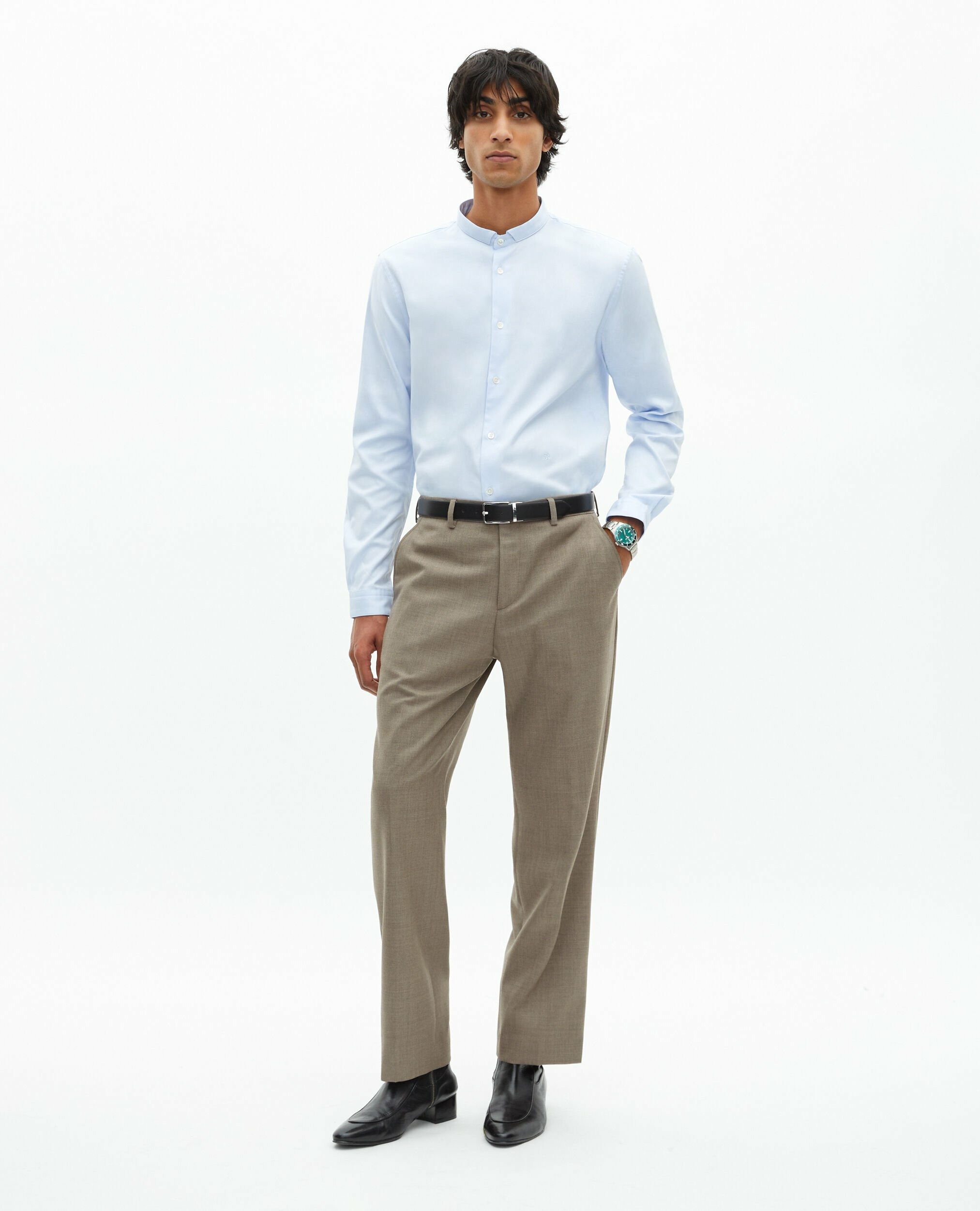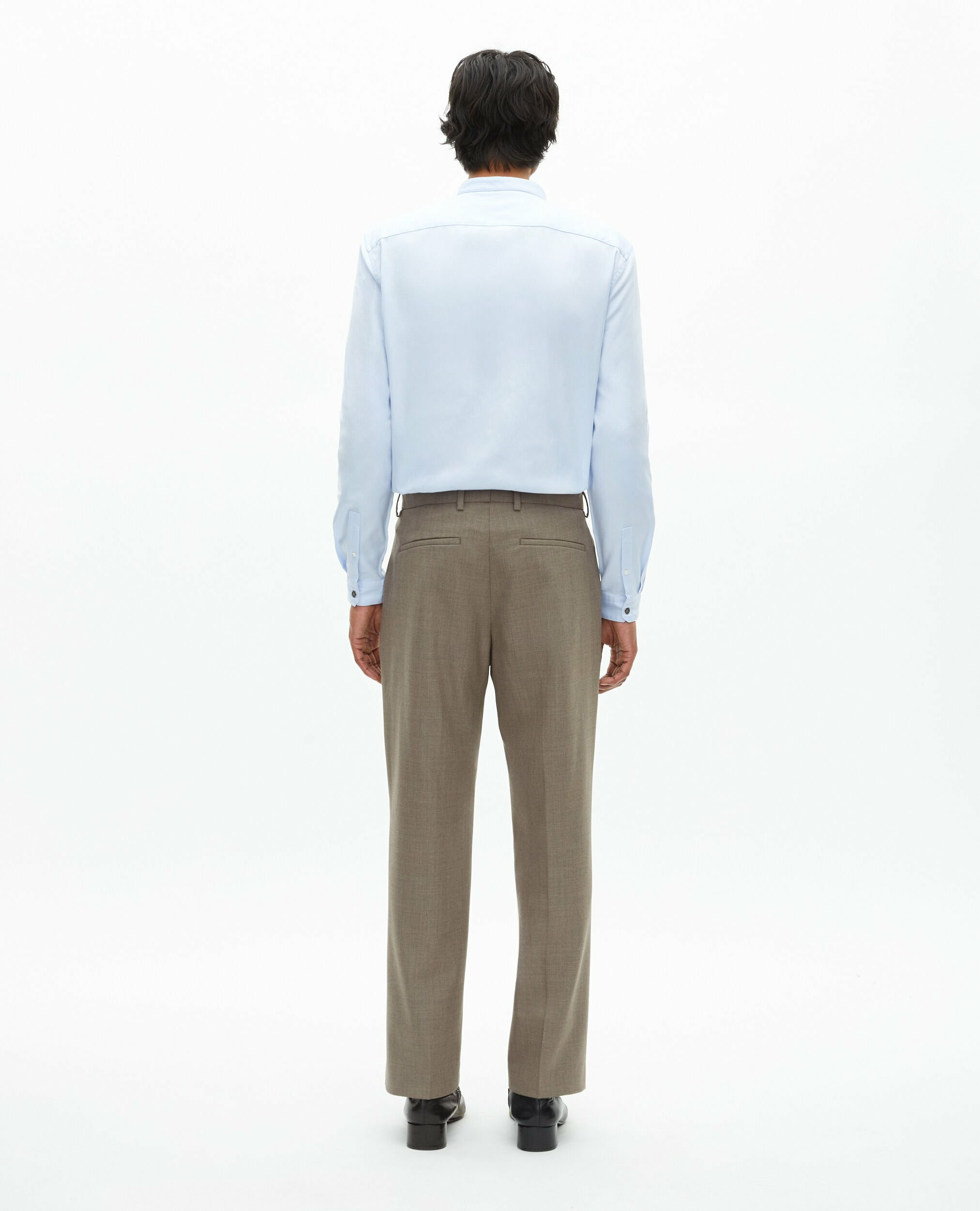 Confectionné en laine italienne de qualité, ce pantalon offre une coupe droite et une taille moyenne avec passants, idéale pour un port quotidien ou des occasions formelles. Les poches latérales italiennes et les poches dos passepoilées apportent une finition soignée et pratique. La fermeture zippée, complétée par un bouton de rappel et une agrafe, garantit un maintien parfait tout au long de la journée.