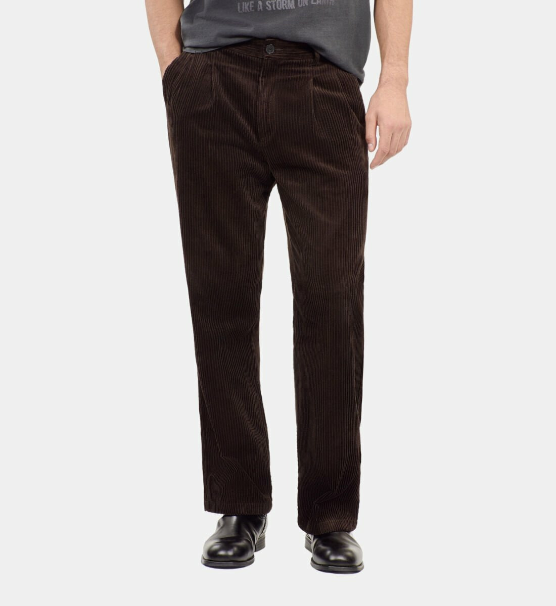 Confectionné dans un velours côtelé de qualité, ce pantalon offre une texture riche et un tombé impeccable. Sa teinte marron profonde s’adapte facilement à toutes vos tenues, du casual chic au look plus formel. Sa coupe moderne met en valeur la silhouette masculine tout en garantissant une liberté de mouvement optimale.