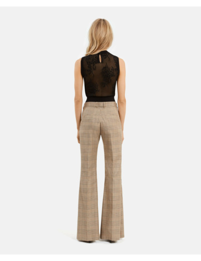 Taille moyenne avec passants, jambe flare. Fermeture zippée avec bouton de rappel et agrafe. Poches latérales italiennes et poches passepoilées au dos. Pour un ensemble coordonné, associez-le au modèle FVES30030KBEI16.