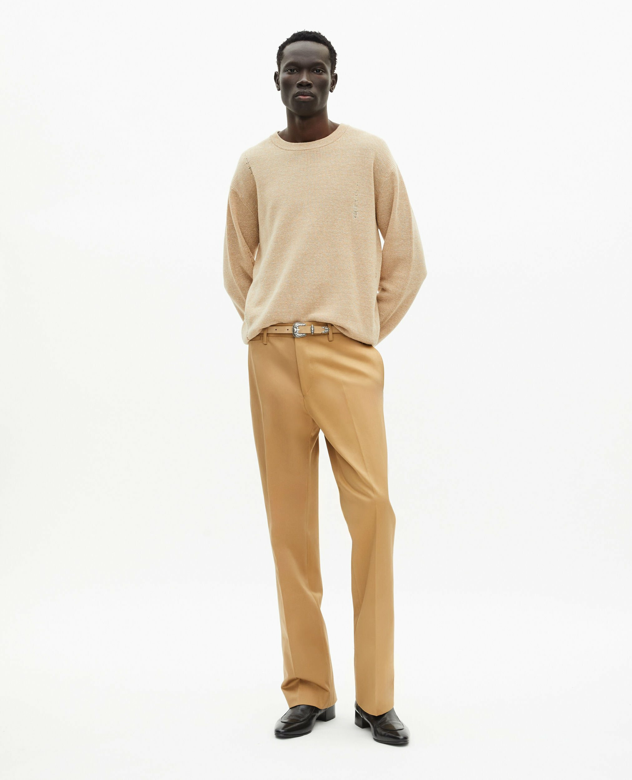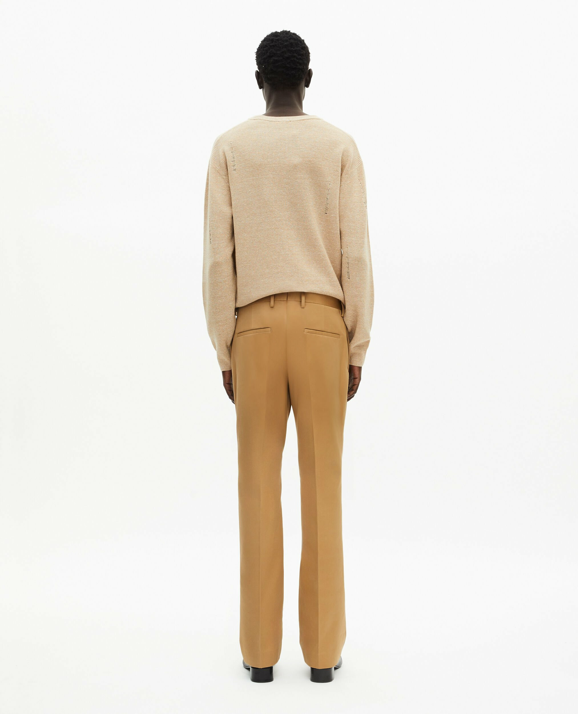 Pantalon homme The Kooples, taille moyenne avec passants, jambe évasée, poches latérales italiennes, poches dos passepoilées, fermeture zippée avec bouton de rappel et agrafe.