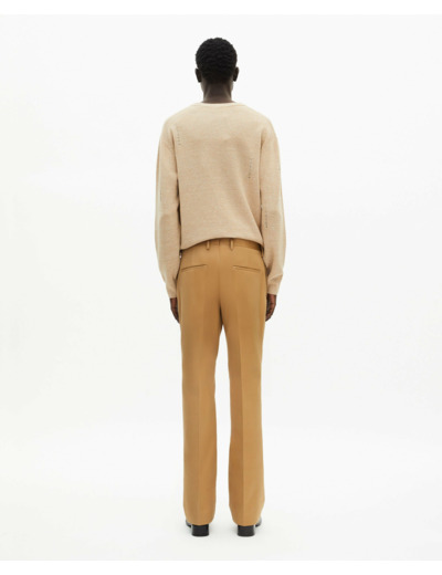 Ce pantalon taille moyenne s’adapte parfaitement à votre morphologie grâce à ses passants pratiques. Les poches latérales italiennes et les poches dos passepoilées offrent un équilibre parfait entre style et fonctionnalité. La jambe évasée apporte une touche de caractère tout en assurant un confort optimal au quotidien.