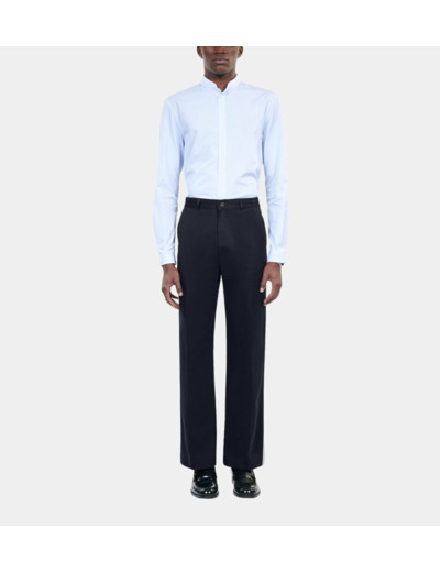 Adoptez l’élégance décontractée avec ce pantalon large en coton bleu marine signé The Kooples. Une coupe moderne qui allie confort et style pour affirmer votre allure en toute simplicité.