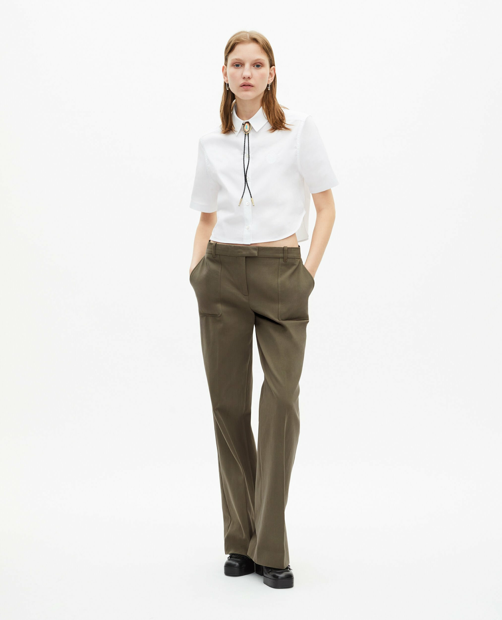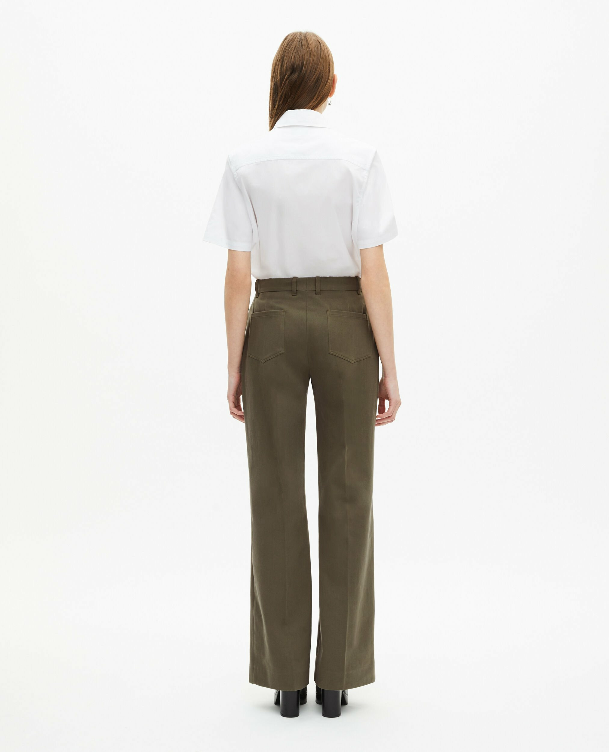 Confectionné en coton 100% extérieur, ce pantalon allie confort et style. Sa taille moyenne équipée de passants assure un maintien parfait, tandis que les plis au milieu devant et dos apportent une structure raffinée. Les poches avant appliquées et les poches dos plaquées offrent une praticité discrète, idéale pour vos essentiels du quotidien. La fermeture zippée, complétée par un bouton de rappel et une agrafe, garantit une tenue impeccable tout au long de la journée.