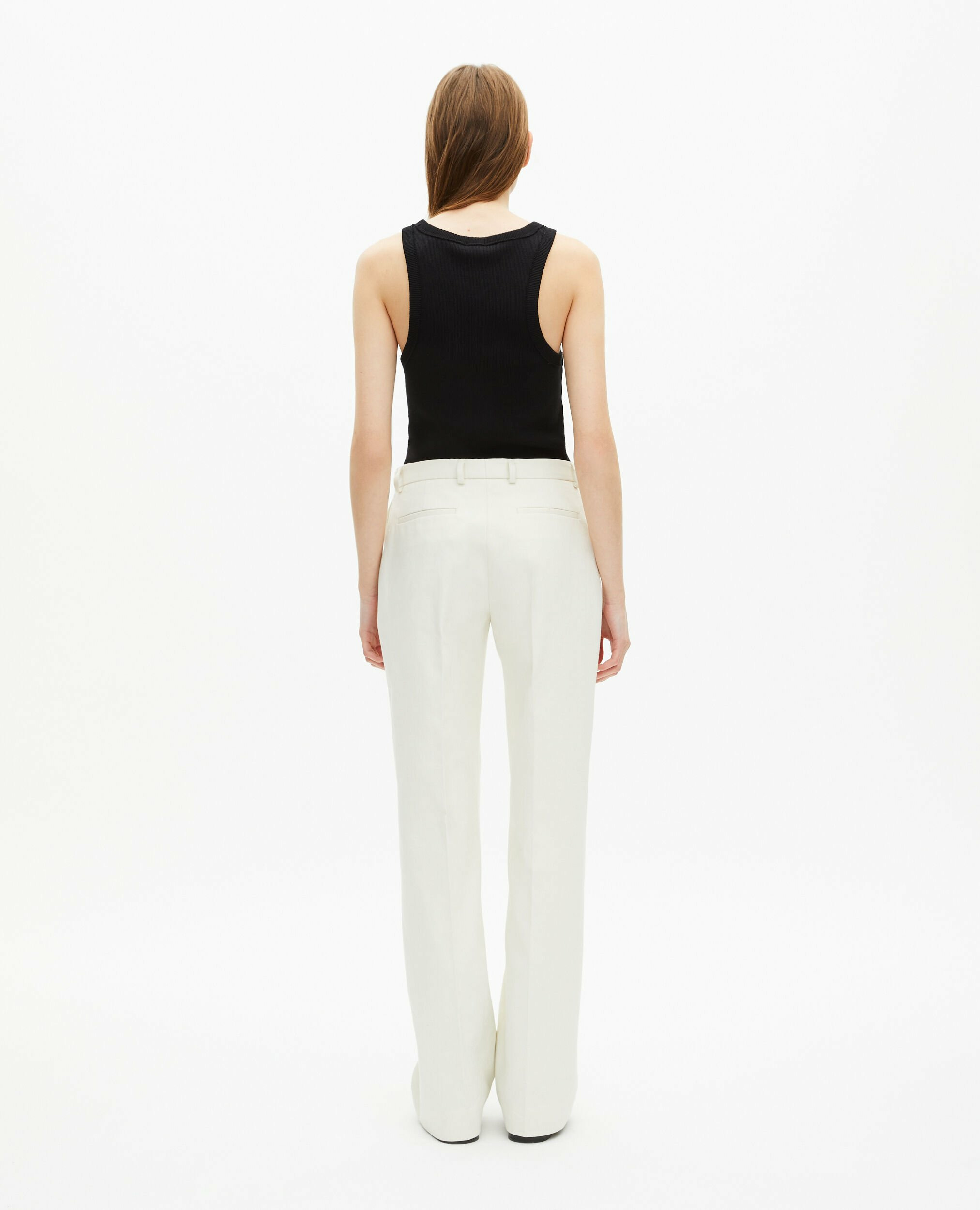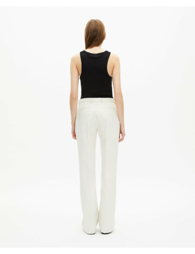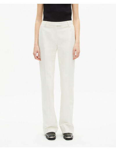 Confectionné en coton italien, ce pantalon de costume écru se distingue par sa coupe à jambe large et sa taille moyenne équipée de passants. Sa silhouette fluide et structurée sublime toutes les morphologies, tandis que les poches latérales italiennes et passepoilées au dos ajoutent une touche pratique et soignée. Associez-le à la veste assortie pour un ensemble harmonieux et impeccable.