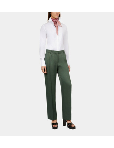 Ce pantalon tailleur valorise votre posture et affine votre taille, tout en offrant une liberté de mouvement optimale grâce à sa coupe droite. Son coloris vert unique apporte une note de fraîcheur à vos tenues classiques, vous permettant de vous démarquer avec subtilité.