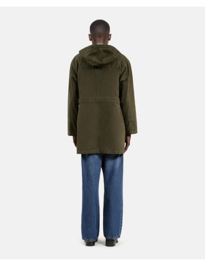 La parka Delave est signée The Kooples, reconnue pour la qualité de ses matériaux et son savoir-faire. Elle présente une coupe large, manches longues, poches raglan et plaquées à rabat, fermeture zippée avec boutons pression, et un gilet intérieur amovible pour une isolation modulable.