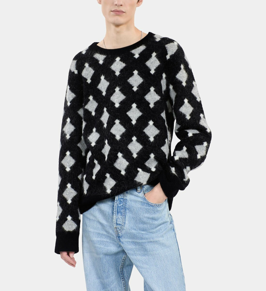 Affirmez votre style avec ce pull à losanges en laine et alpaga, alliant élégance et confort. Une pièce incontournable pour un look moderne et raffiné.