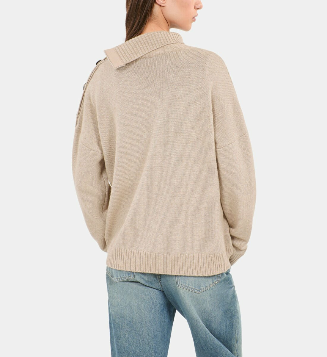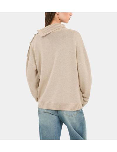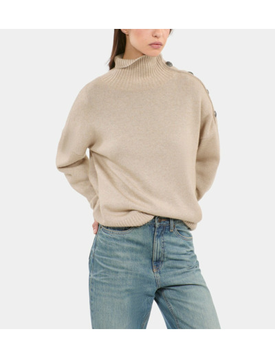 Confectionné dans un mélange précieux de laine, cachemire et fil doré, ce pull femme se distingue par son toucher exceptionnel et son éclat subtil. Les boutons héritage apportent une touche d’authenticité tandis que les manches longues garantissent confort et protection contre le froid. Sa coupe ample assure une aisance parfaite, idéale pour un look décontracté mais soigné.