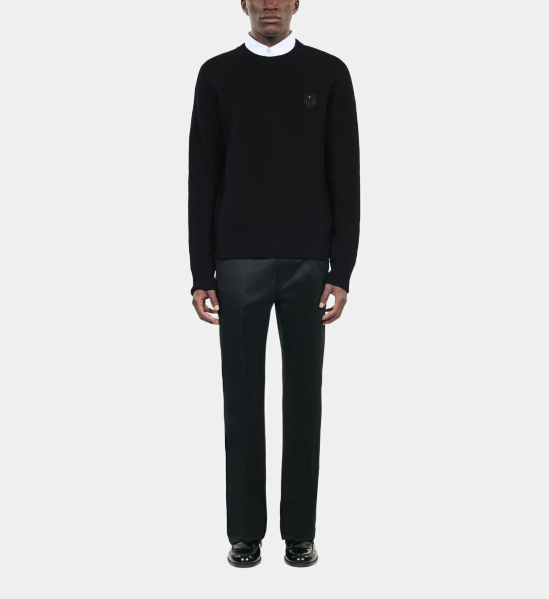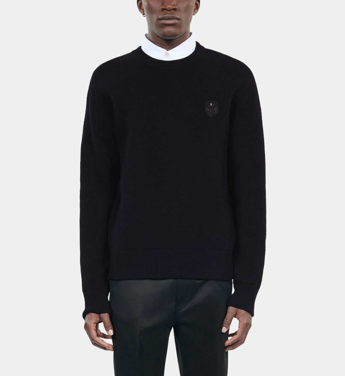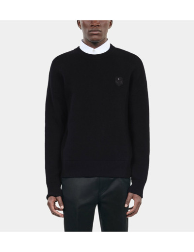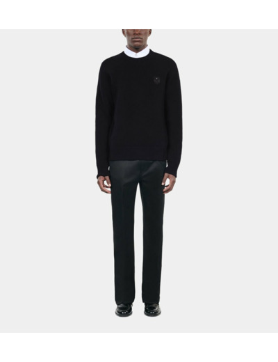Confectionné dans une laine de qualité, ce pull offre une coupe droite parfaitement équilibrée, idéale pour structurer votre silhouette sans contrainte. Son col rond et ses manches longues apportent une touche classique, tandis que le patch blason signe discrètement l’authenticité de la marque. Les bords côtes assurent une tenue impeccable au fil du temps, pour un look soigné en toutes circonstances.