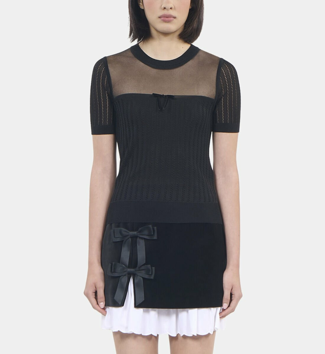 Conçu pour sublimer la femme moderne, ce pull à manches courtes et col rond épouse parfaitement les formes grâce à sa coupe slim. La maille ajourée laisse entrevoir un jeu de textures délicat, idéal pour une allure chic en toute saison. Portez-le seul ou sous une veste pour un look travaillé sans effort.