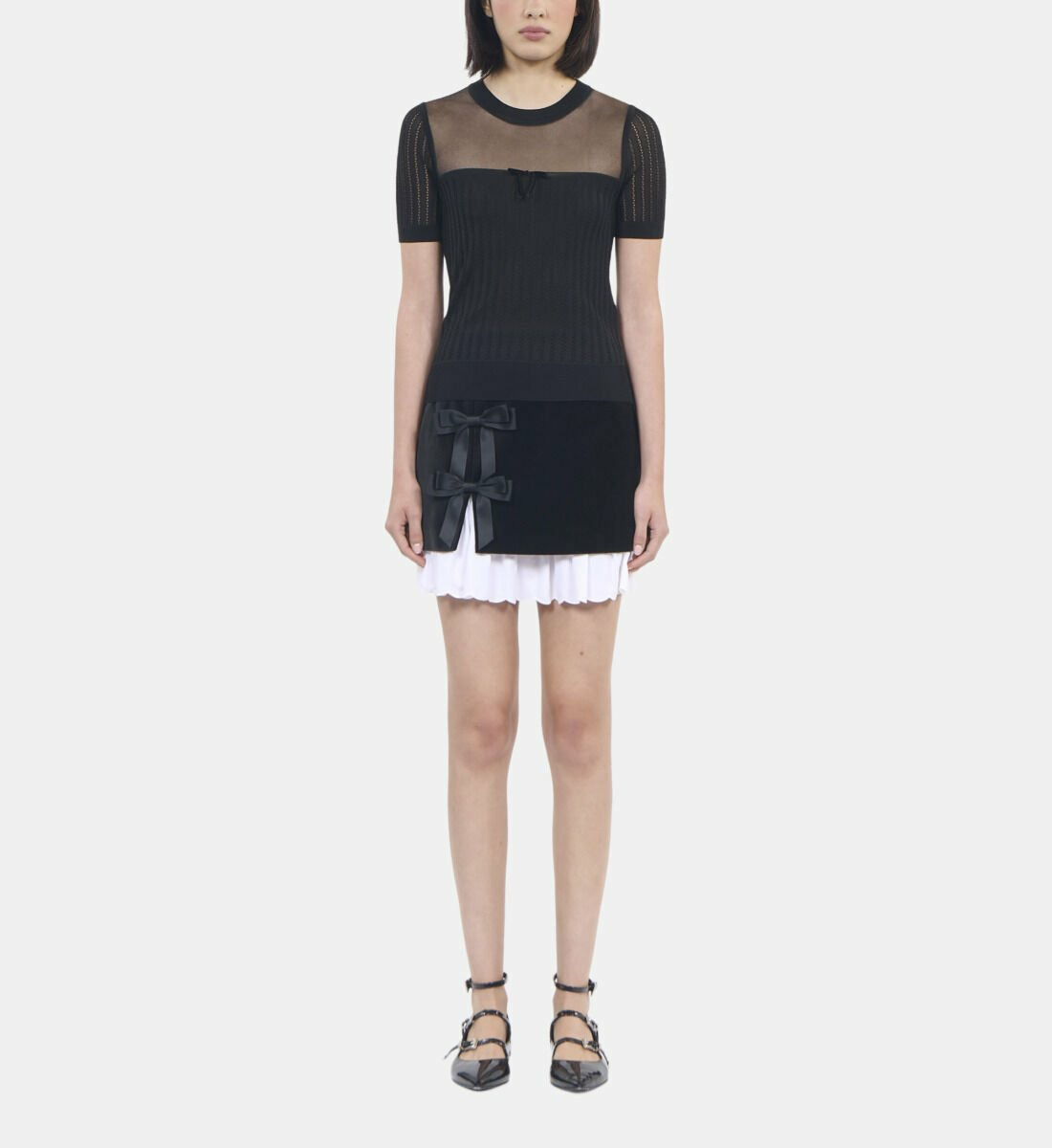 Adoptez l’élégance subtile avec ce pull en maille ajourée noir signé The Kooples. Sa coupe ajustée et son nœud en velours apportent une touche de féminité raffinée à votre silhouette.