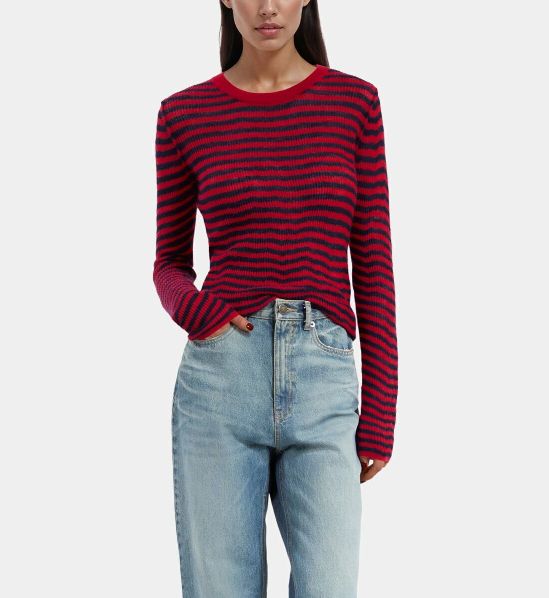 Adoptez l’élégance décontractée avec ce pull en mohair à rayures, une pièce phare pour sublimer votre garde-robe hivernale. Alliant douceur et style, il réinvente les classiques avec une touche contemporaine.