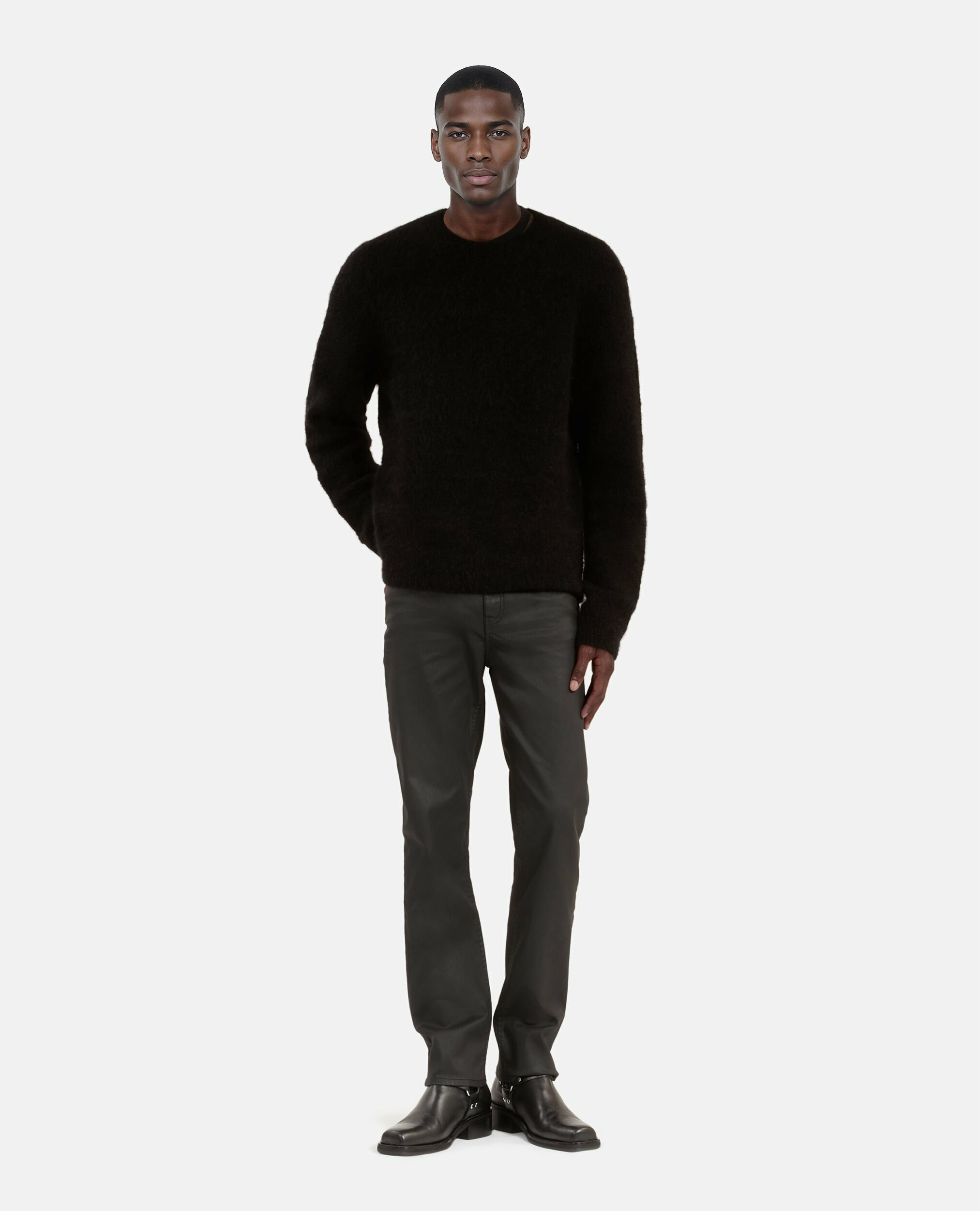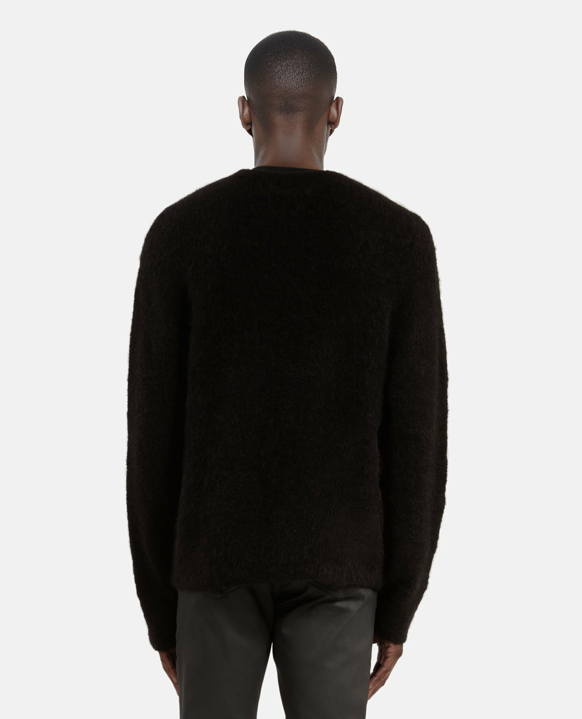 Composition et entretien : Pull homme en laine et mohair. Coupe droite, col rond, manches longues, bords côtes. Pour préserver la qualité des fibres, privilégiez un lavage à la main ou un nettoyage à sec.