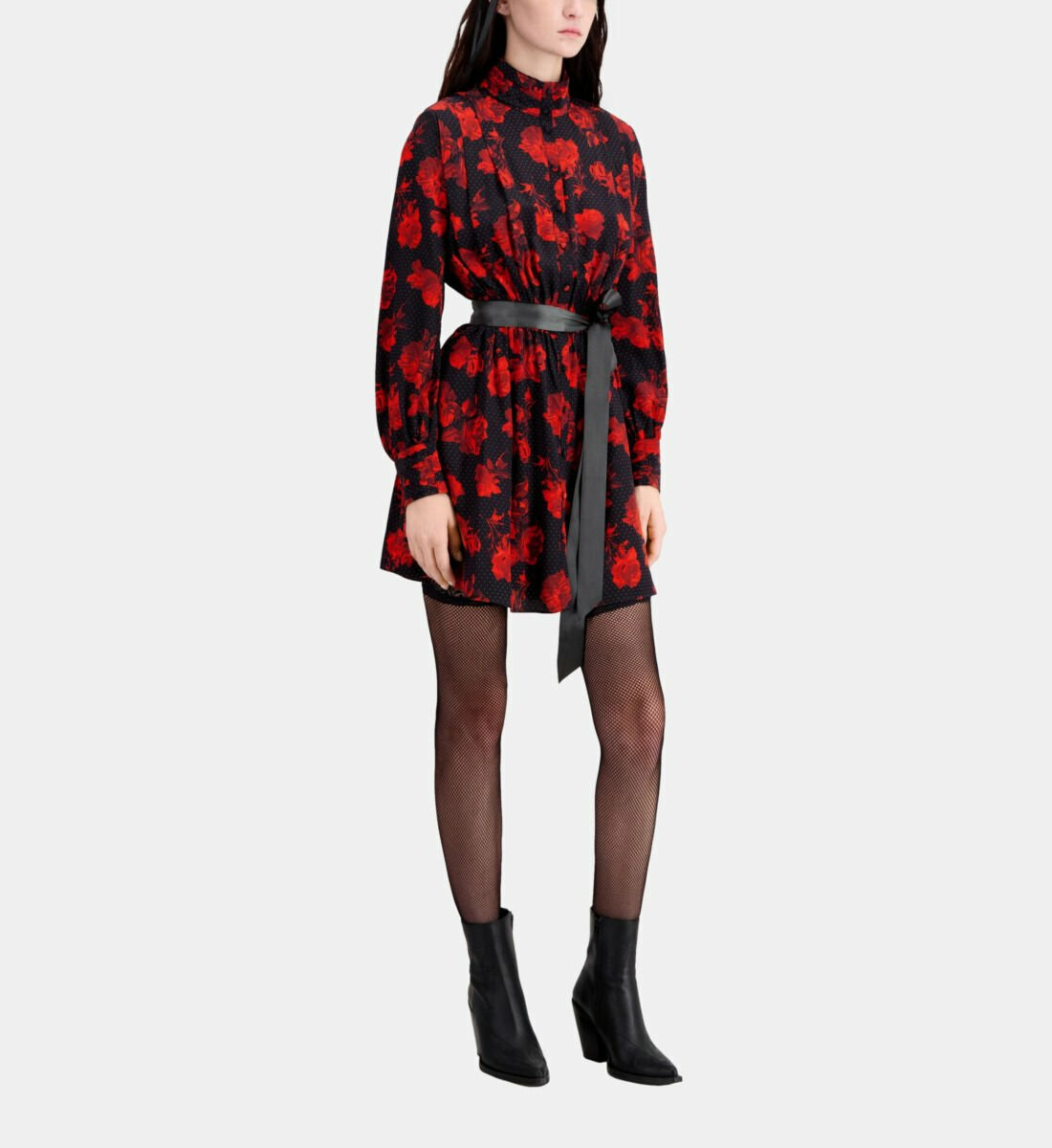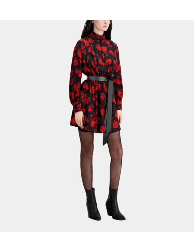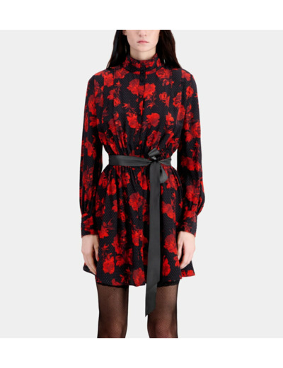 Sublimez votre allure avec cette robe chemise courte en soie, où l’élégance rencontre la légèreté. Son imprimé fleuri noir et rouge apporte une touche audacieuse à un classique revisité.