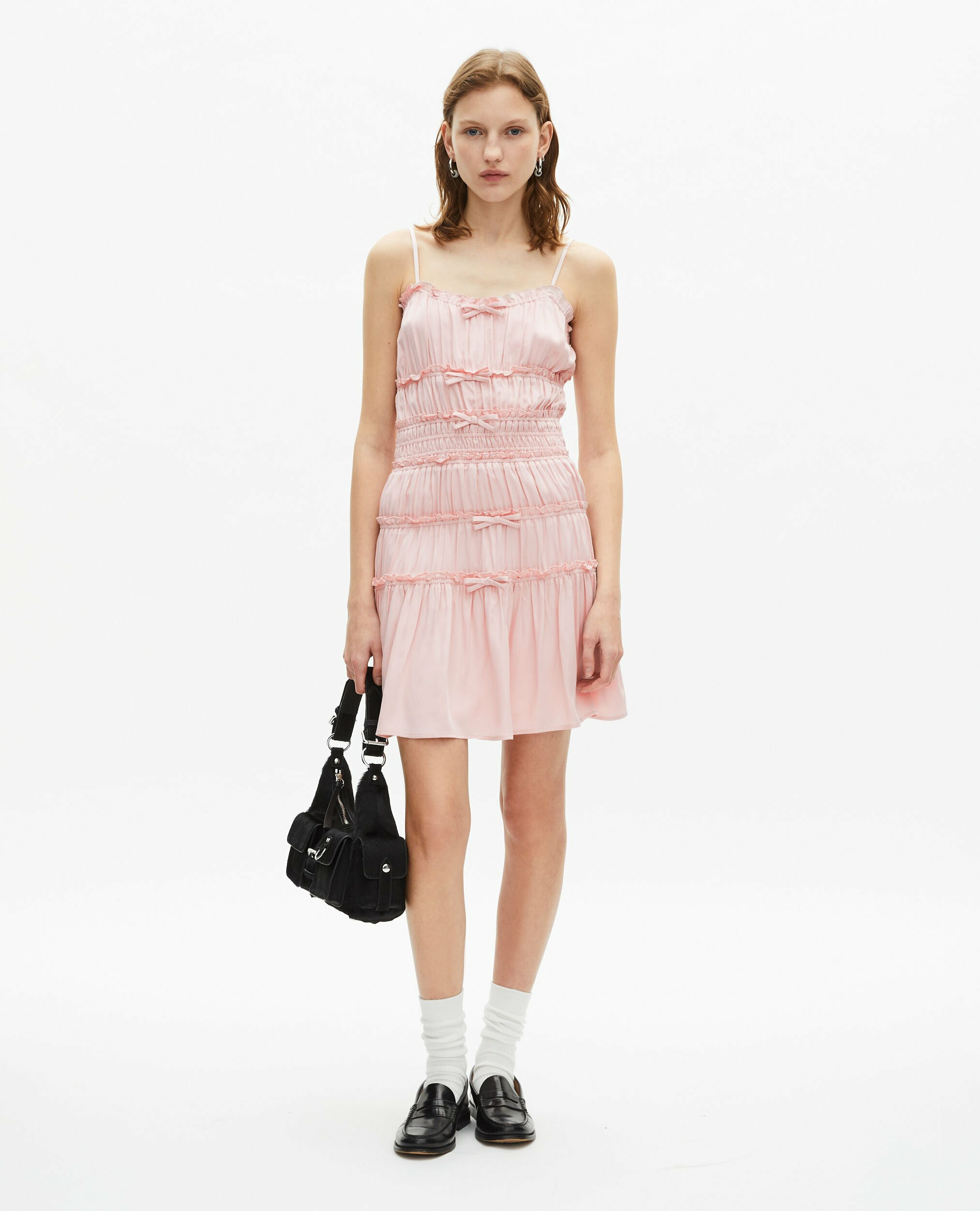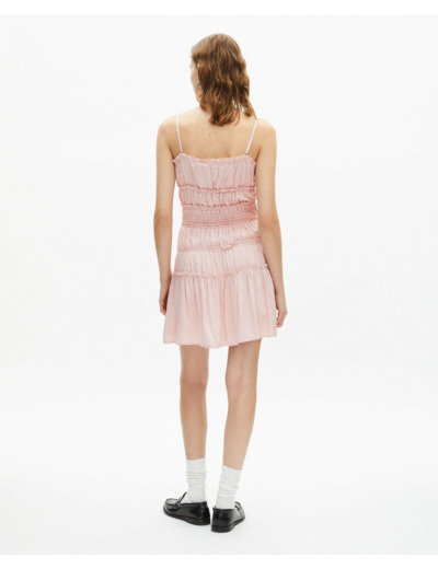 Conçue pour épouser parfaitement le corps, cette robe à fines bretelles ajustables met en valeur vos épaules tout en offrant un confort optimal grâce à sa taille élastiquée. Les fronces délicates et les nœuds en tissu apportent une touche de raffinement et de mouvement, pour un look à la fois décontracté et sophistiqué.