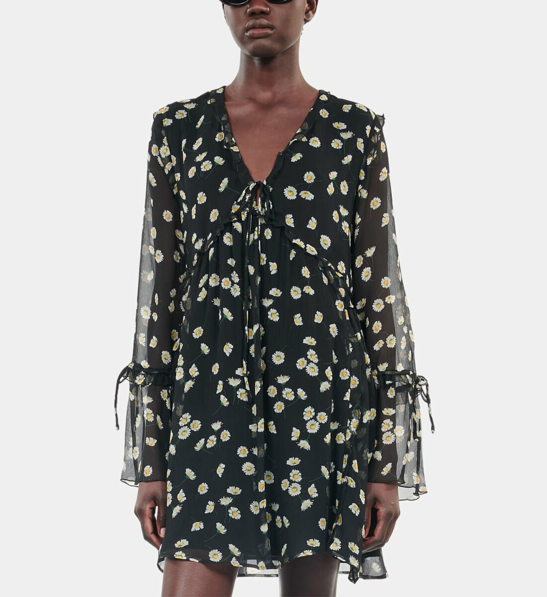Sublimez votre silhouette avec cette robe courte en soie signée The Kooples, où l’élégance rencontre la délicatesse d’un imprimé fleuri noir et blanc. Une pièce raffinée qui allie modernité et féminité avec un charme intemporel.