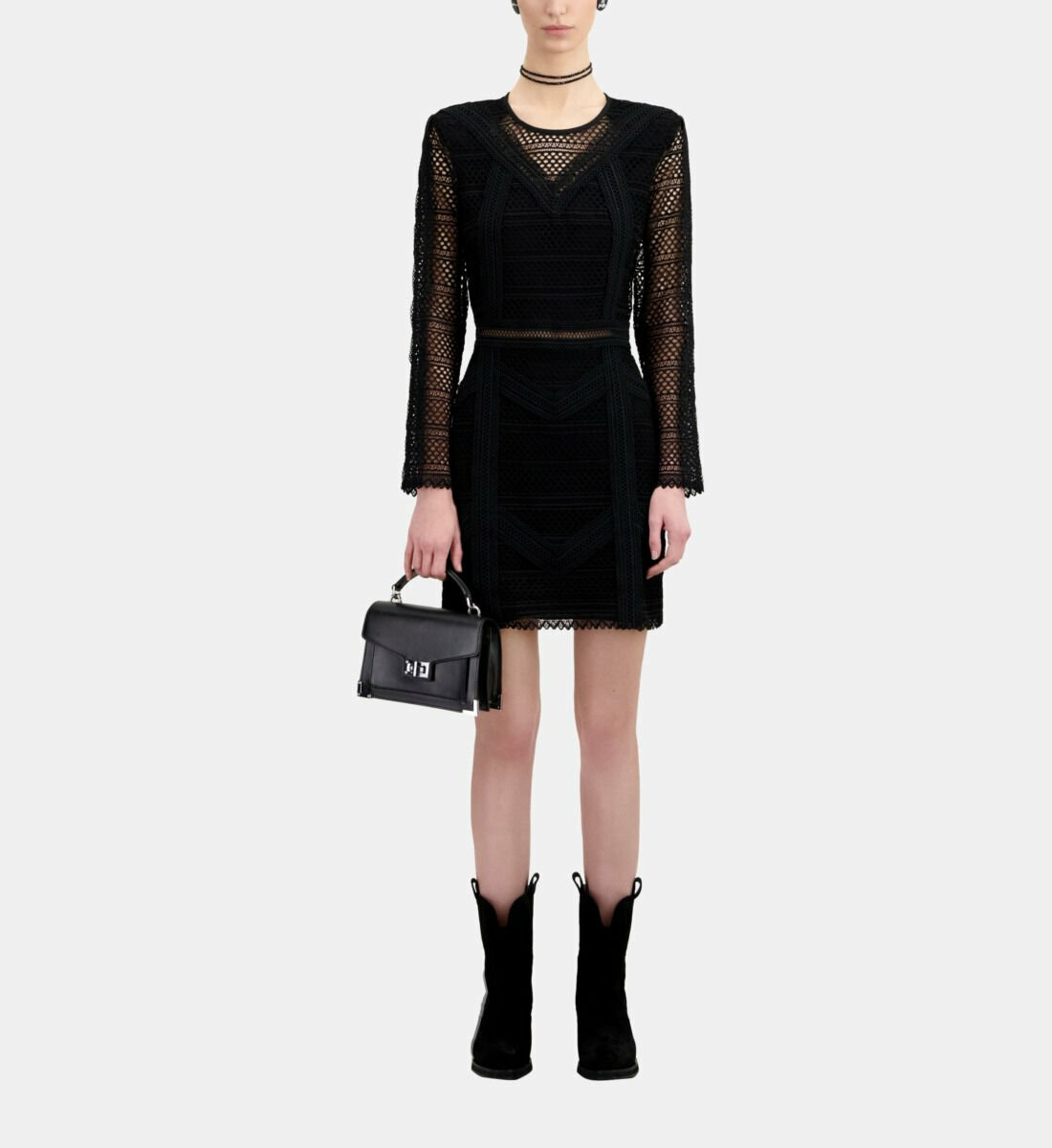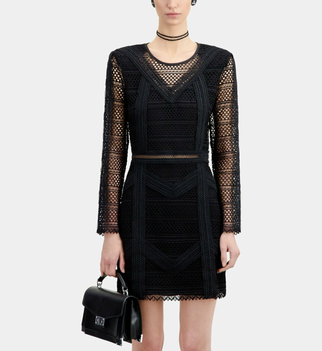 Sublimez votre silhouette avec cette robe courte mêlant élégance et modernité. Le jeu de dentelles en guipure apporte une touche sophistiquée et audacieuse à votre tenue.