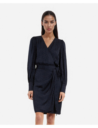 Affirmez votre style avec cette robe courte The Kooples au jacquard léopard audacieux et au décolleté cache-cœur élégant. Une pièce qui allie féminité et caractère pour sublimer chaque silhouette.