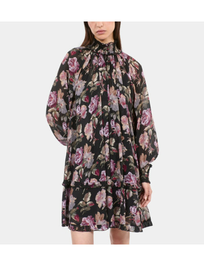 Robe Courte Imprimé Fleuri Black / Purple