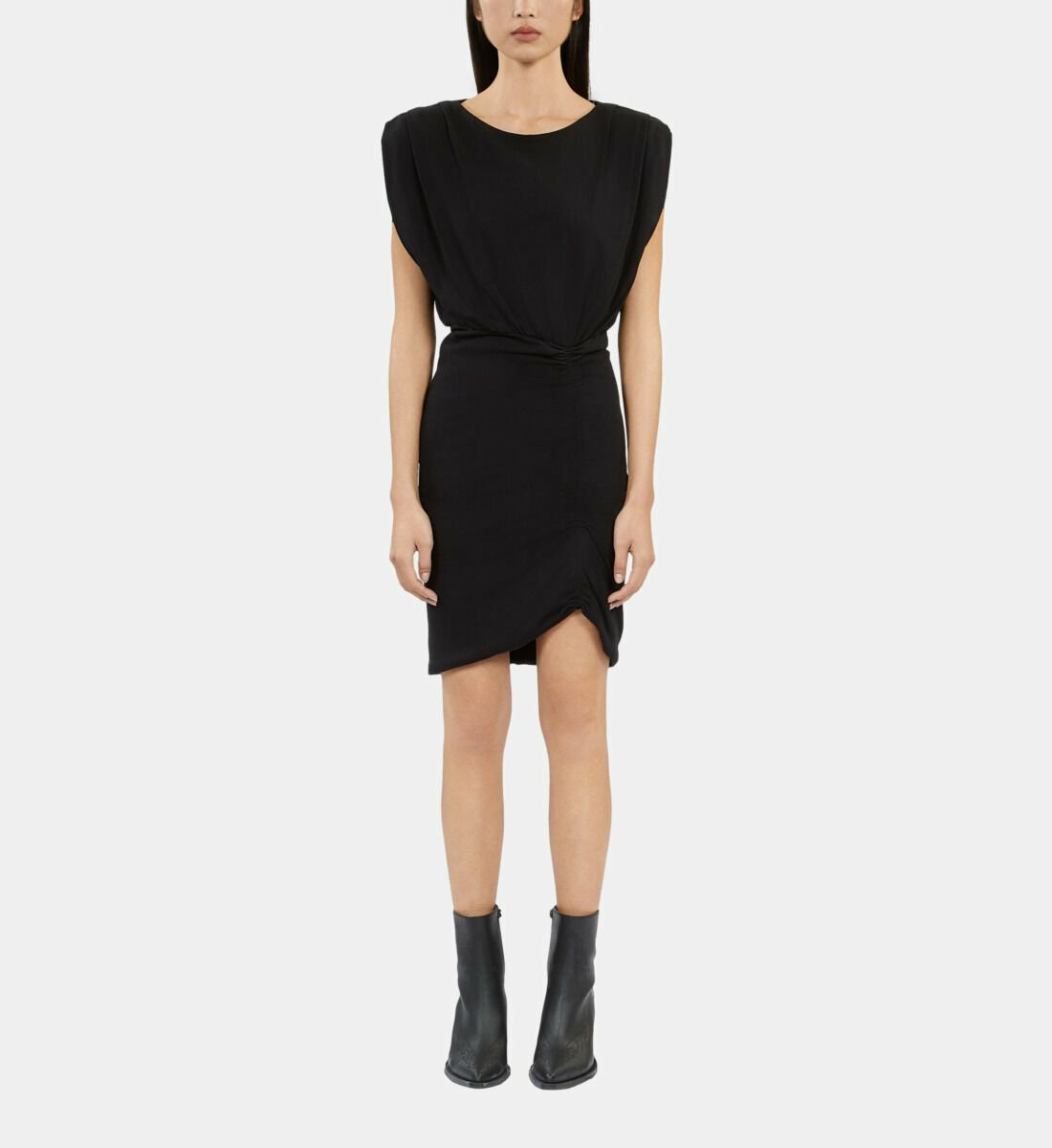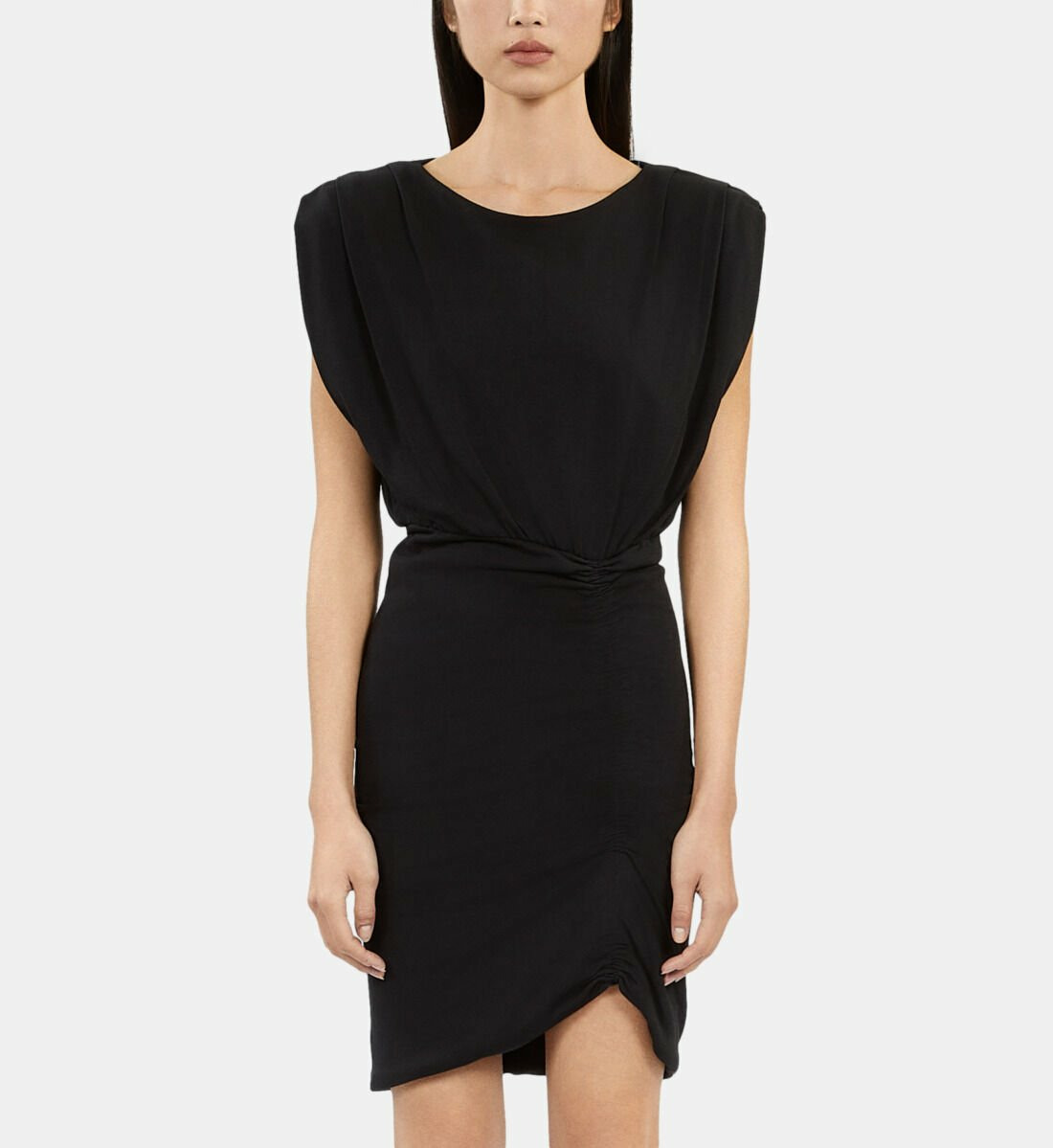 Sublimez votre silhouette avec cette robe courte noire signée The Kooples, alliant élégance et modernité. Son jeu de fronces et son col bateau apportent une touche sophistiquée à votre tenue.