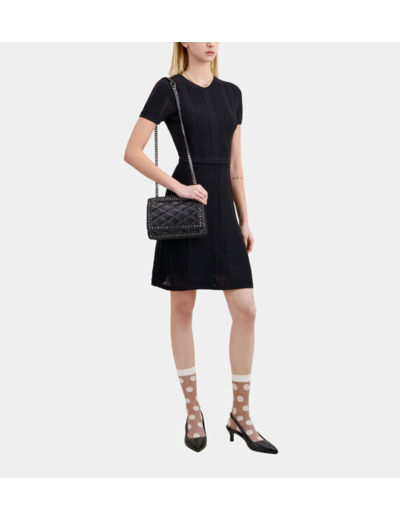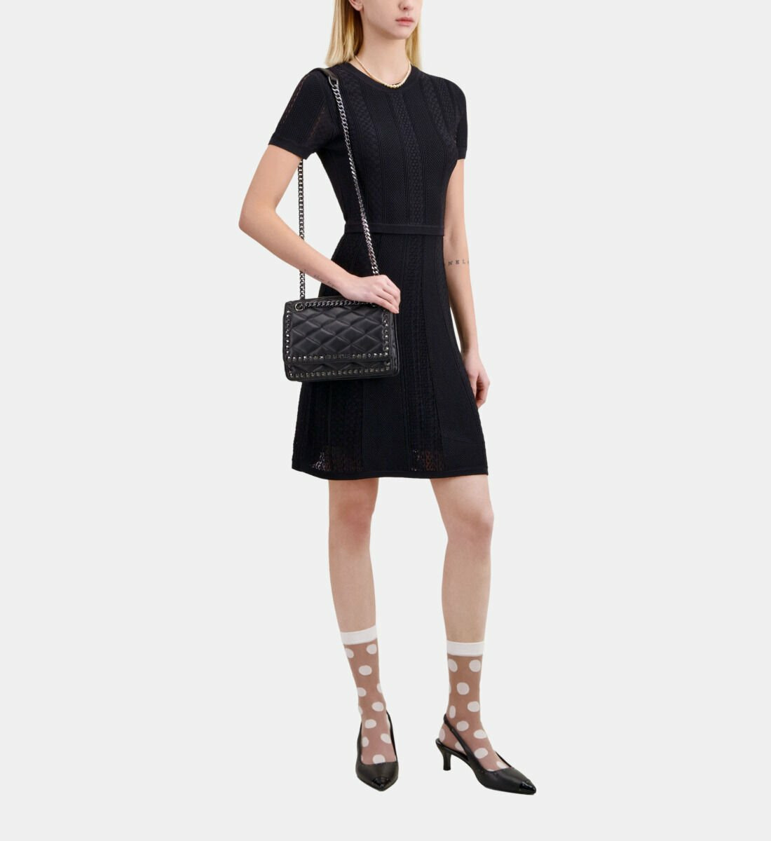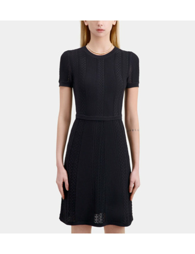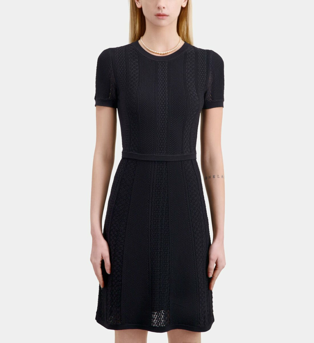 Sublimez votre silhouette avec cette robe courte noire en maille ajourée, alliant élégance et modernité. Son ouverture délicate dans le dos apporte une touche audacieuse à un classique revisité.