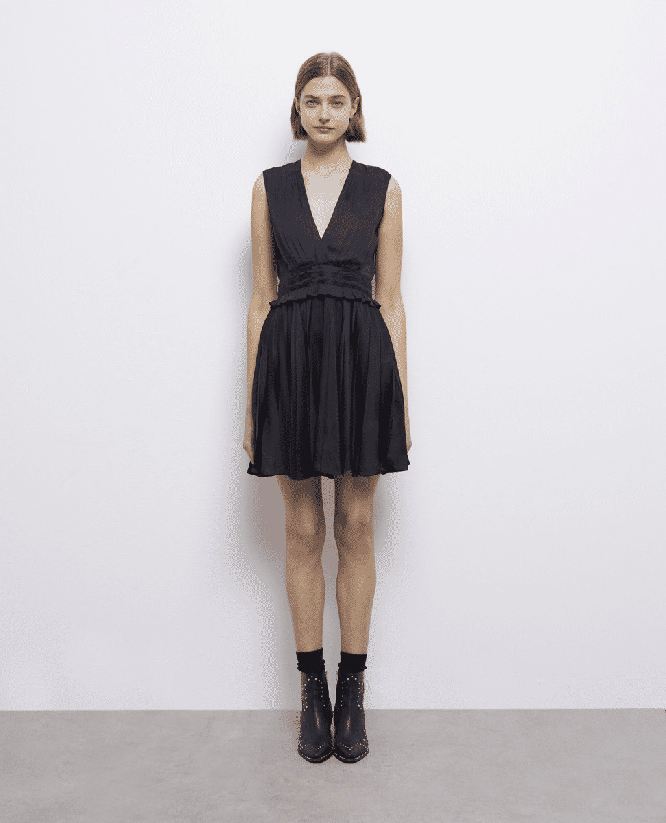 Sublimez votre allure avec cette robe courte plissée signée The Kooples, un équilibre parfait entre élégance et modernité. Sa coupe fluide et ses plis délicats apportent un mouvement naturel et une silhouette féminine affirmée.