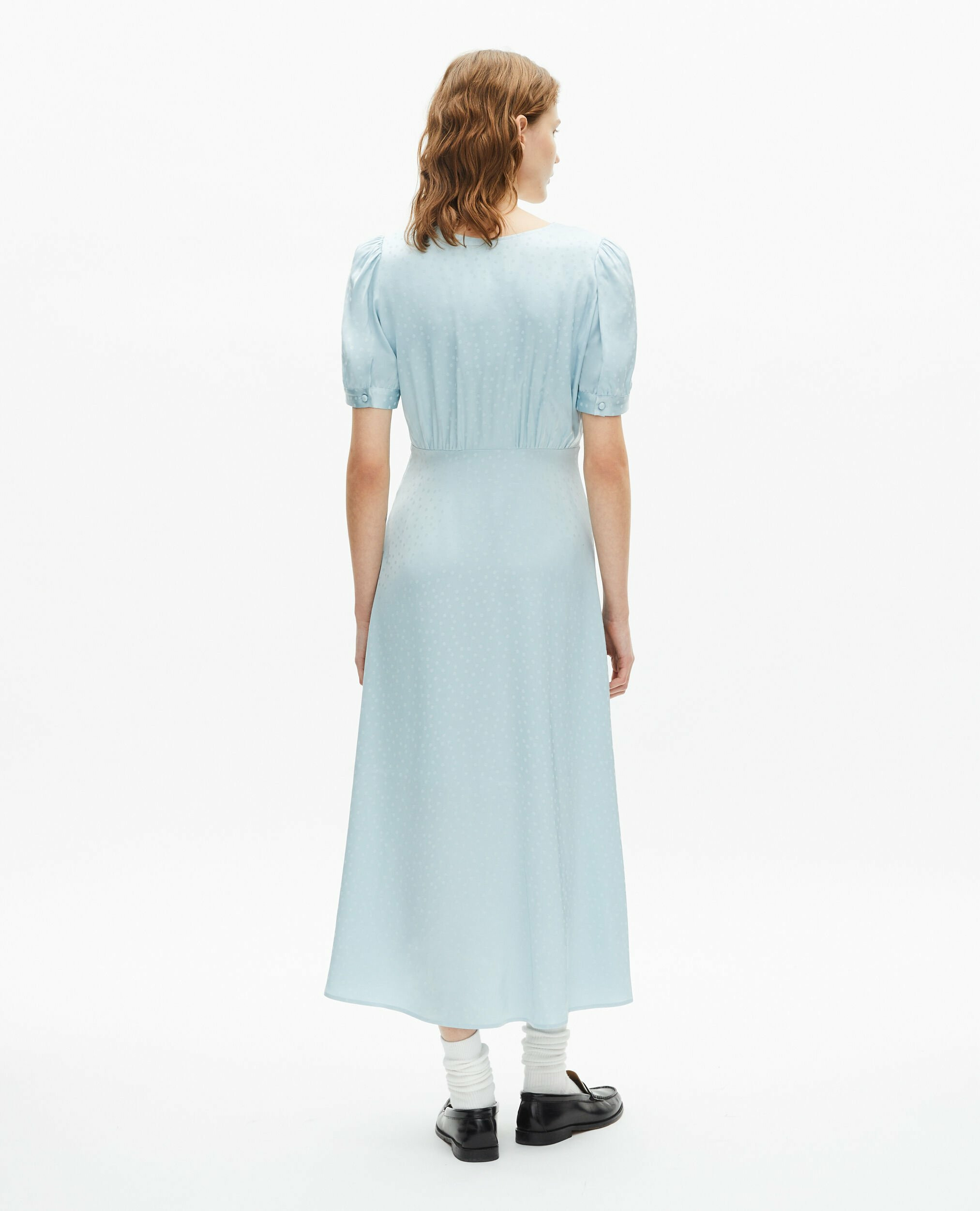 Sublimez votre silhouette avec cette robe longue The Kooples, alliant élégance et modernité. Son imprimé pois jacquard et son col en V apportent une touche de sophistication discrète.