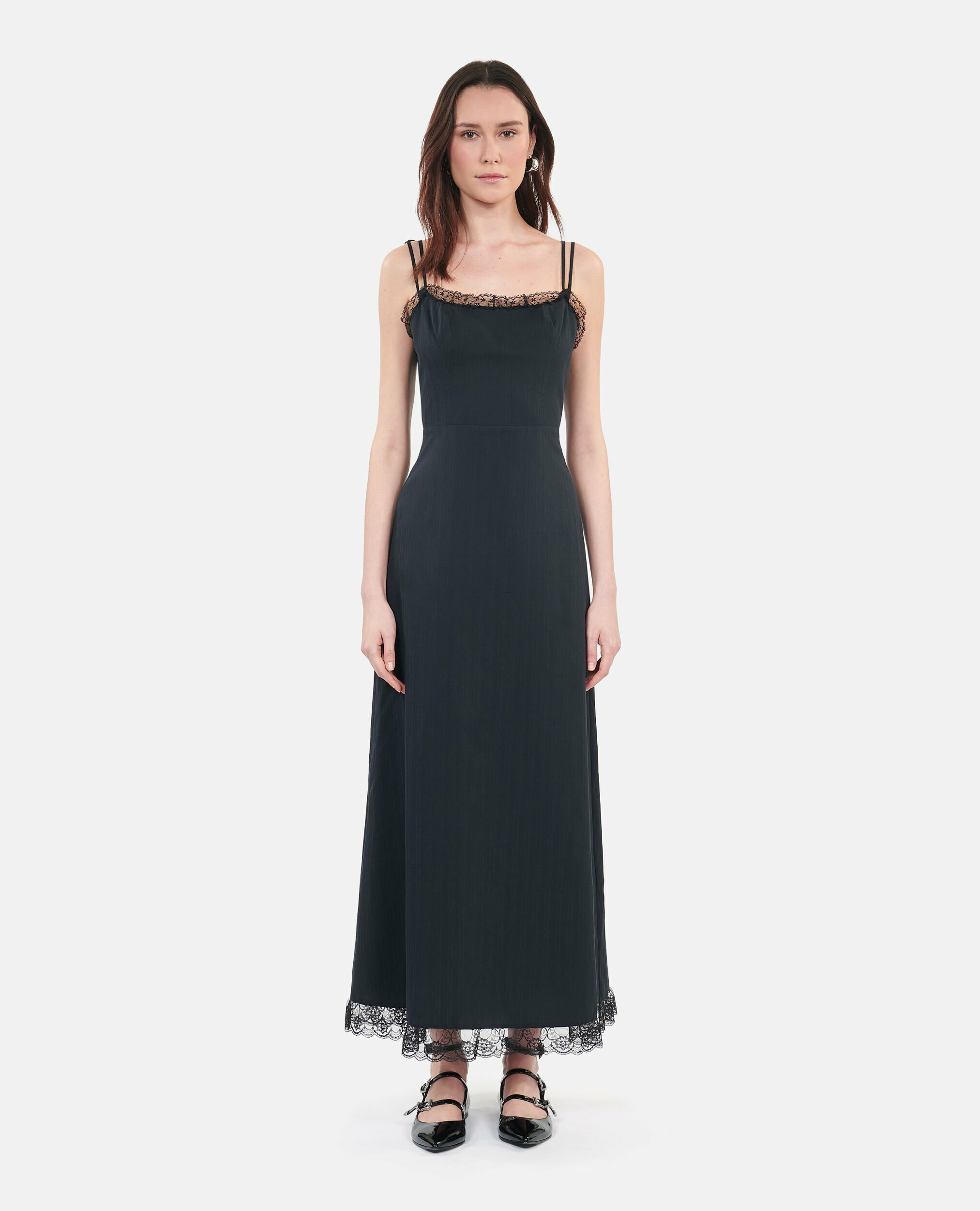 Sublimez vos soirées avec cette robe longue noire signée The Kooples, où élégance et féminité se rencontrent dans un jeu de dentelle délicate. Une silhouette affinée et des détails raffinés pour un look à la fois audacieux et sophistiqué.