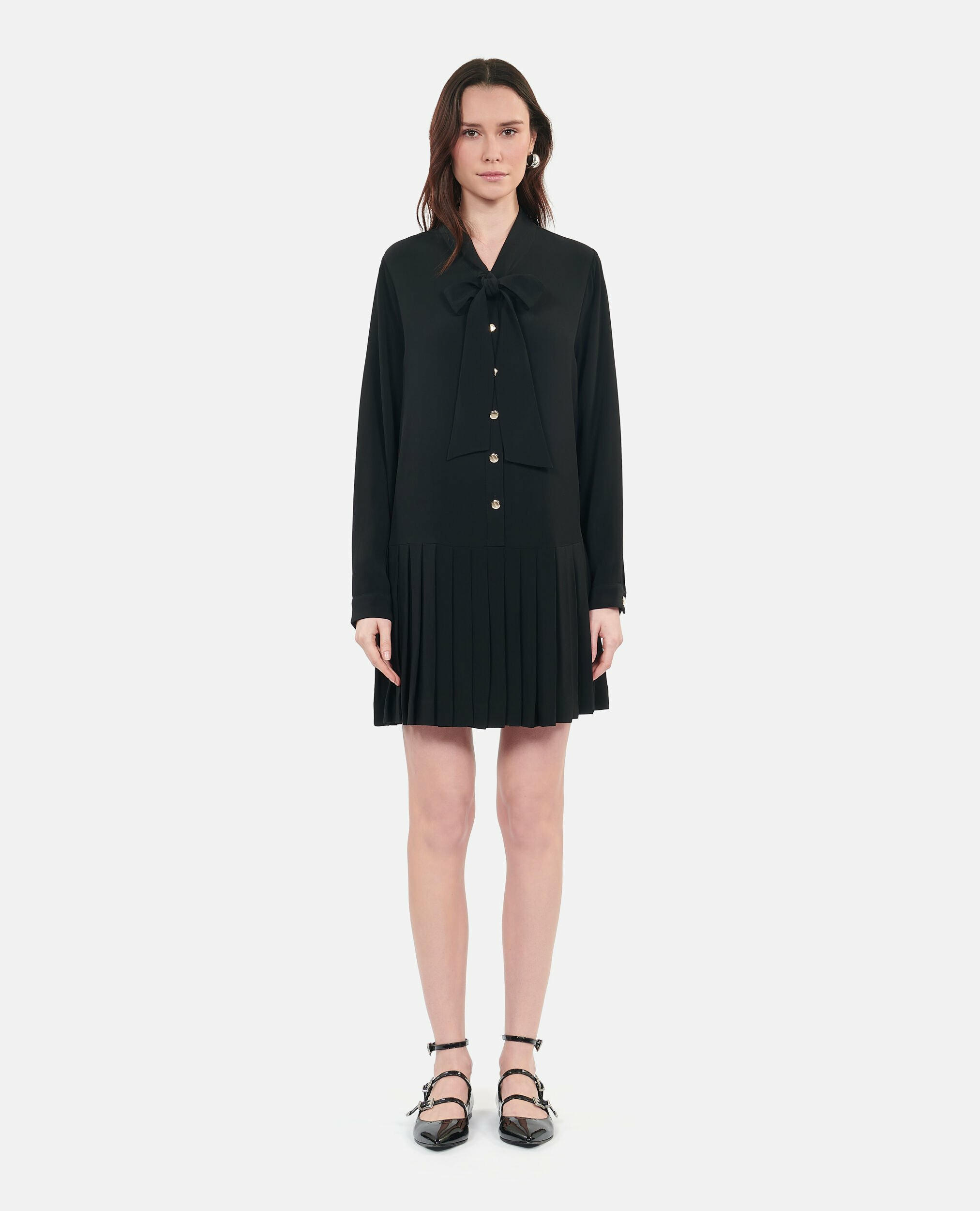 Affirmez votre élégance avec cette robe noire courte signée The Kooples, où modernité et raffinement se rencontrent. Son plissé délicat au bas apporte une touche de mouvement et de légèreté à une silhouette droite et structurée.