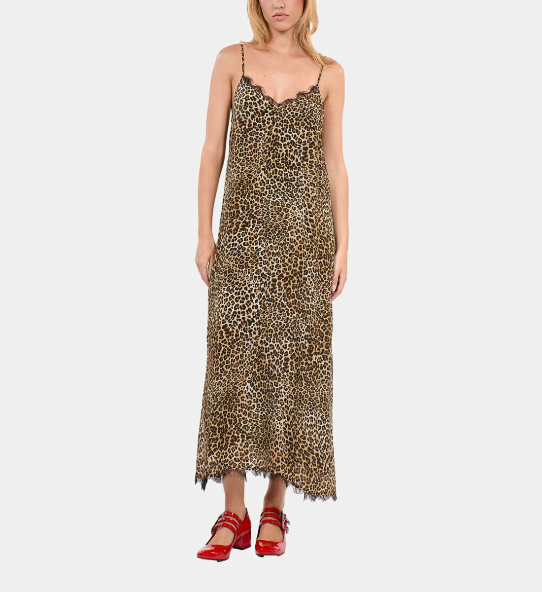 Sublimez vos soirées avec cette robe nuisette longue en soie imprimé léopard, une pièce audacieuse et élégante signée The Kooples. Son imprimé sauvage et sa coupe fluide incarnent la féminité moderne avec une touche de caractère.