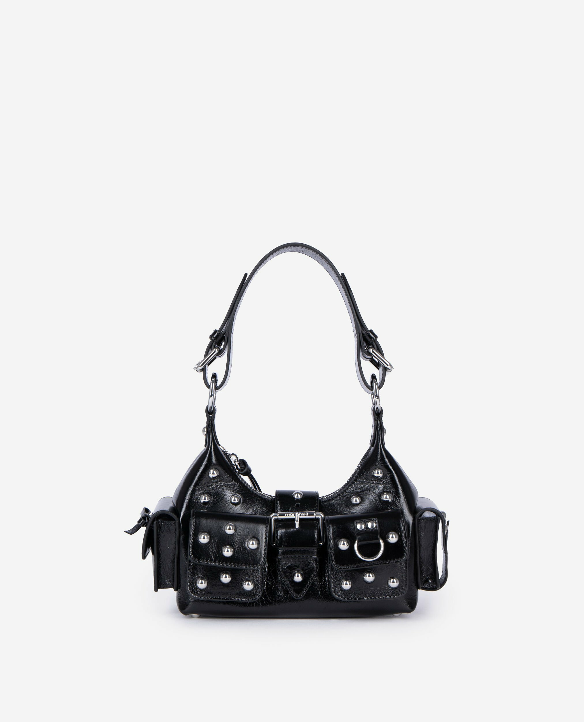 Le sac Amelia Small en cuir avec studs incarne l’alliance parfaite entre audace et élégance. Son design vintage et ses clous argentés apportent une touche rock chic à toutes vos tenues.